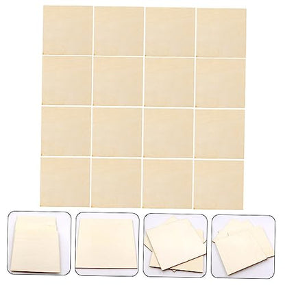 SEWOART 16pcs Pieces Square Wood Chips Wooden Cutouts Board Wooden Pallets Unfinished Wood Tiles Wooden Square Cutouts Wooden Squares for Crafts