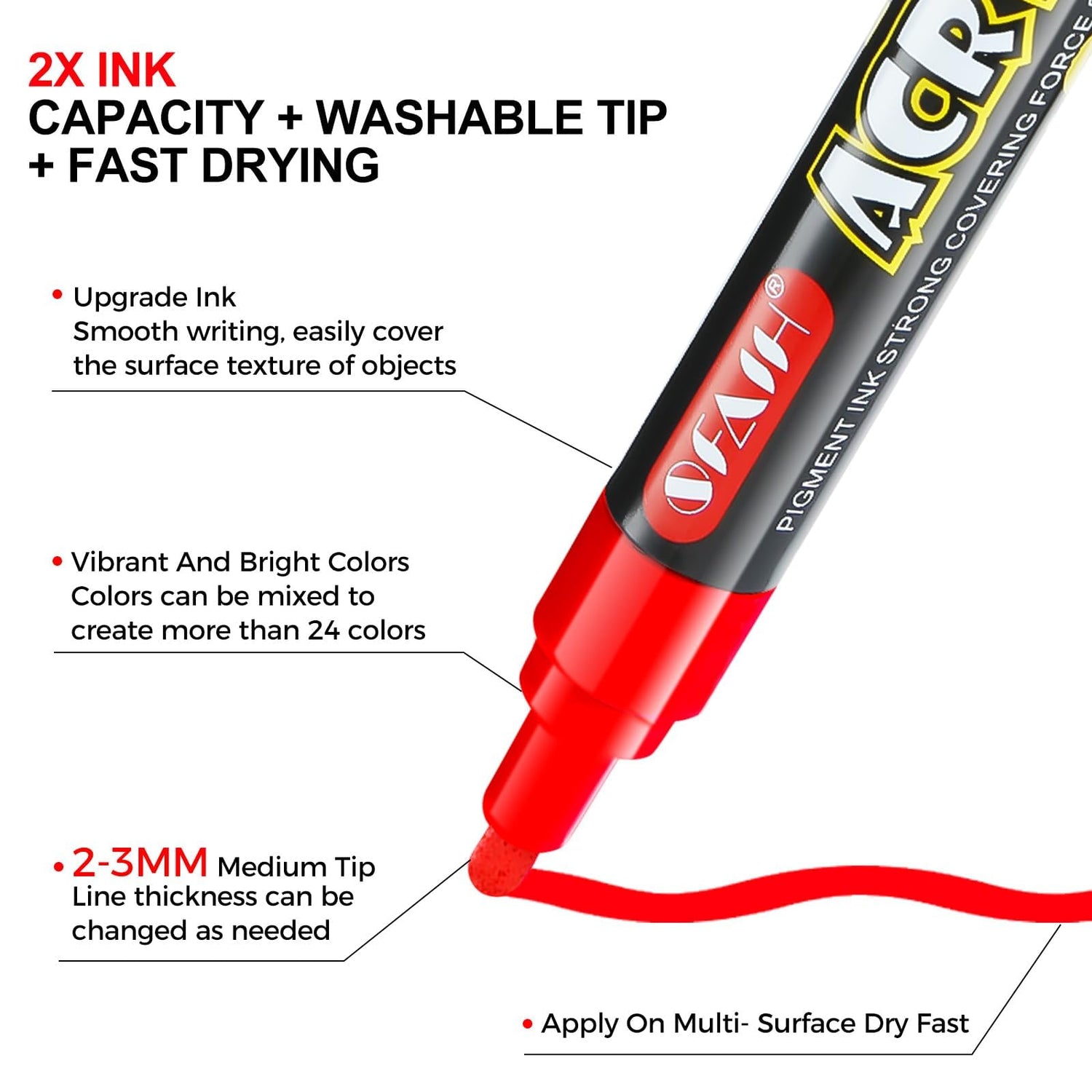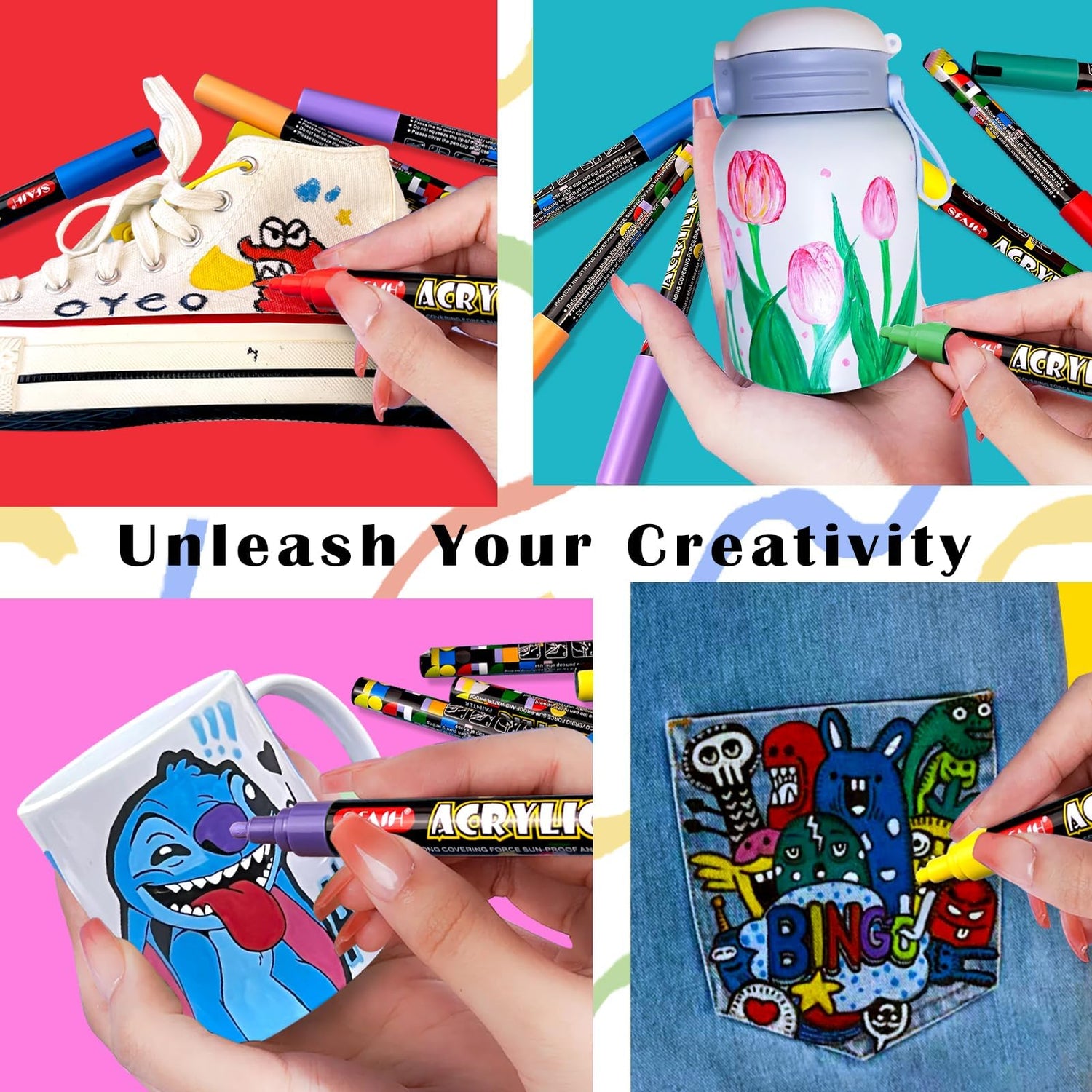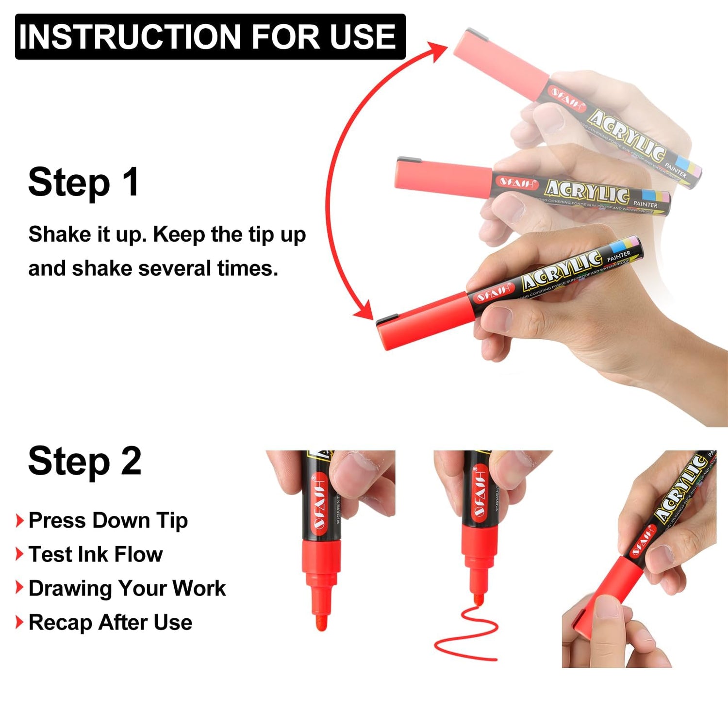- Resistant Medium Tips: Featuring a 2-3mm medium tip sourced from Japan, our acrylic paint markers for canvas ensure easy control, seamless flow, and comprehensive coverage. Ideal for detailing, writing, and touch-ups.