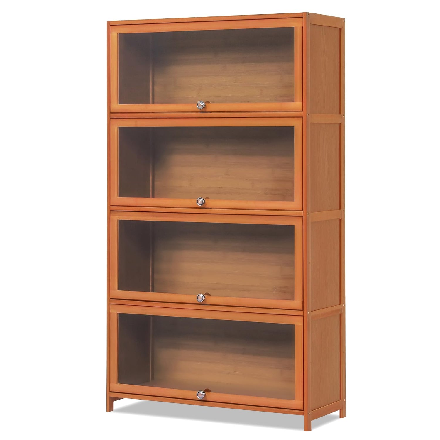 SFIHOME 55" H Bamboo Bookcase with Acrylic Doors, 4 Tier Free Standing Tall Book Shelf Storage Cabinet, Corner Bookshelf Display Organizer Save Space for Living Room Office Home, Brown