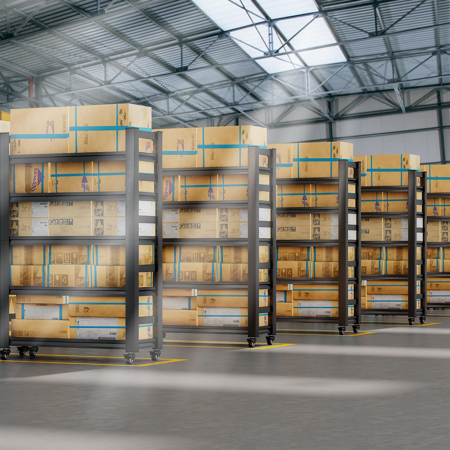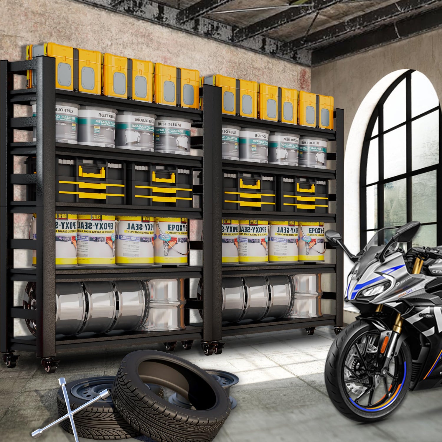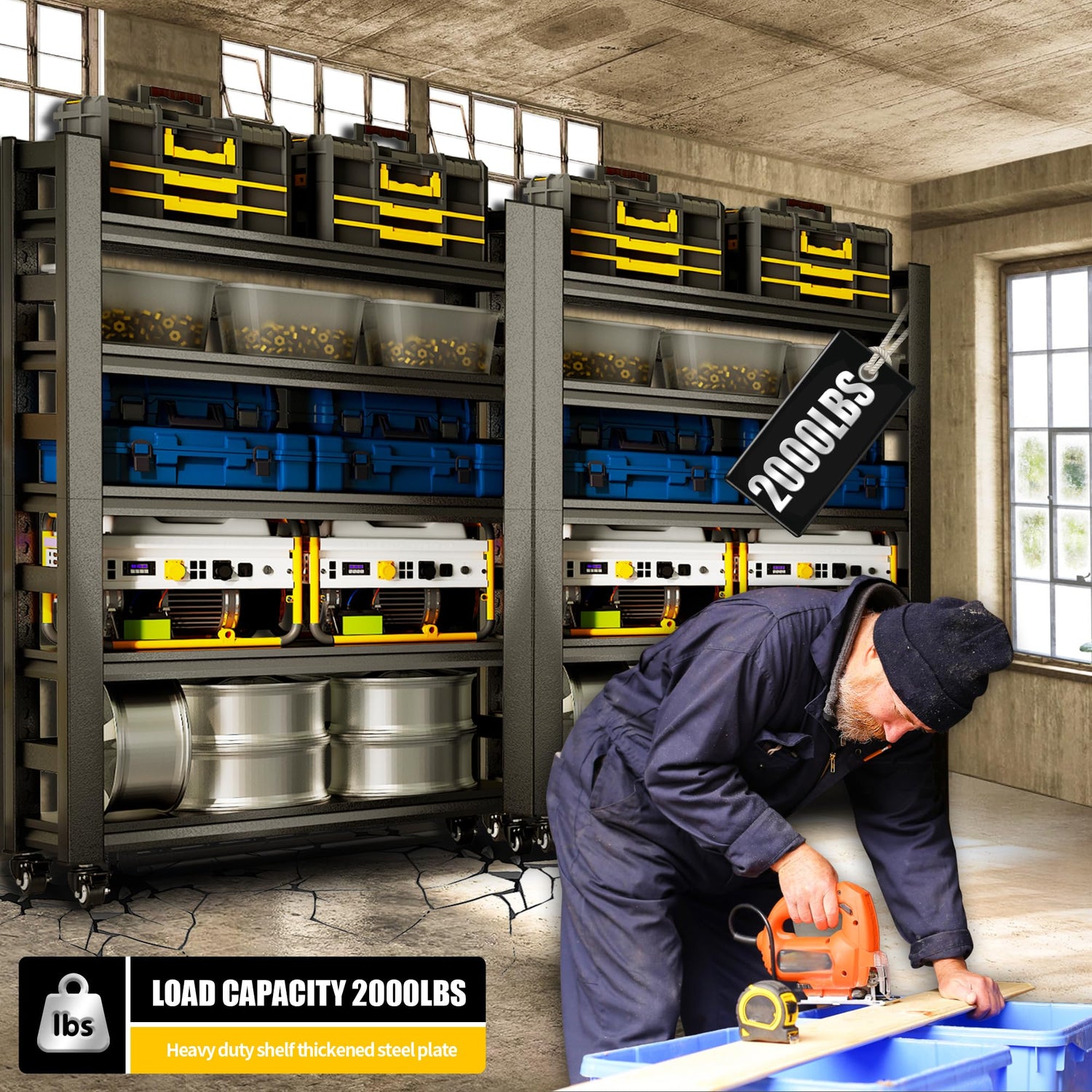 SFTORMAS 72" H Garage Shelving with Wheels Heavy Duty Storage Shelves Adjustable 5 Tier Metal Shelves for Garage Warehouse Basement Industrial Utility Racks,Black,72" HX35 WX15.75 D
