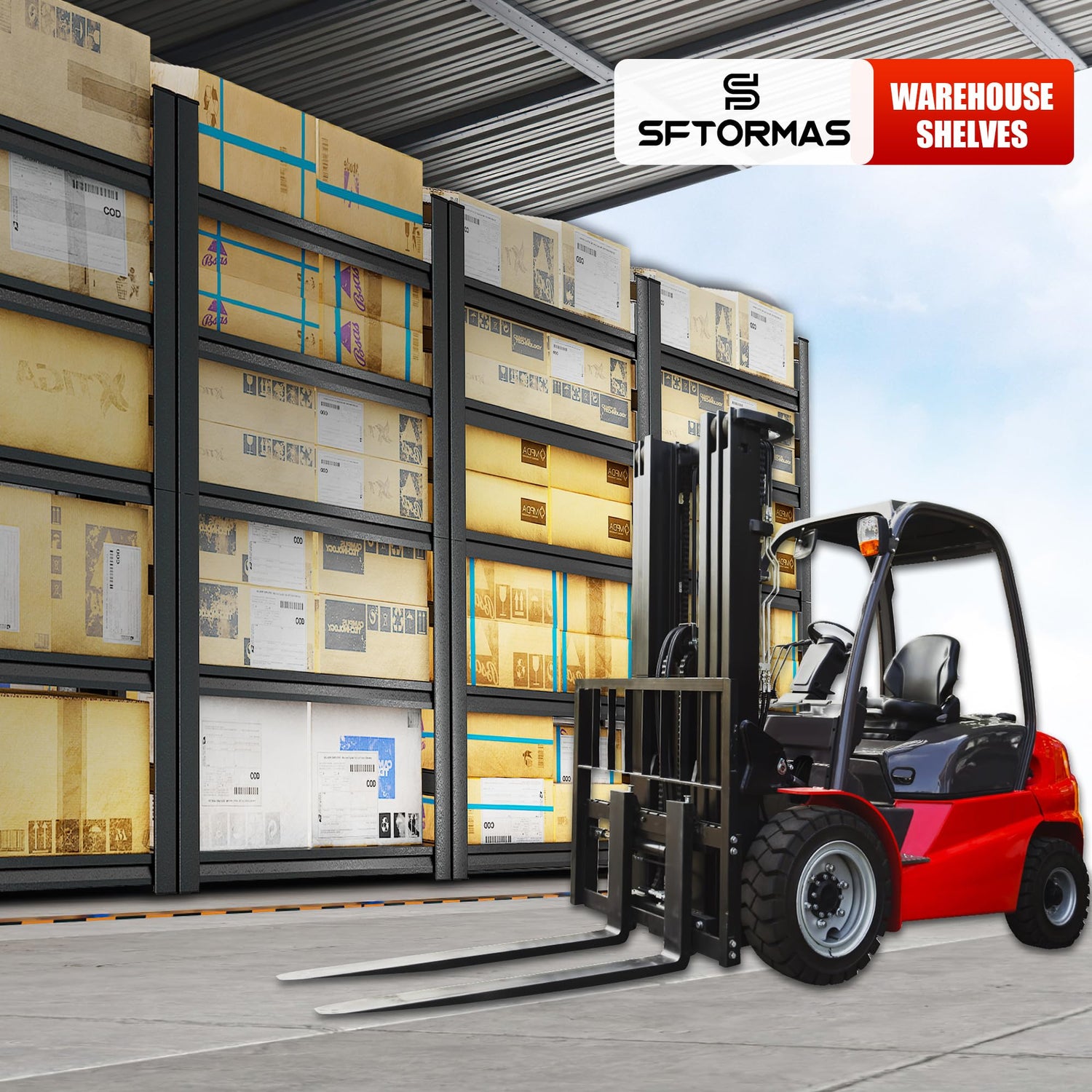 - ❤️STURDY DURABLE AND STABLE:SFTORMAS garage shelves,choose heavy-duty thickened steel,thickened panels, sturdy and stable double-thickness columns,the load capacity of each compartment is up to 800 pounds,sturdy and durable,high-end environmentally friendly powder coated,non-slip,wear-resistant,rust-resistant,no odor.will not wobble or shake when fully loaded,SFTORMAS storage shelves will serve you for decades and meet all of our storage needs,perfectly meeting your expectations.