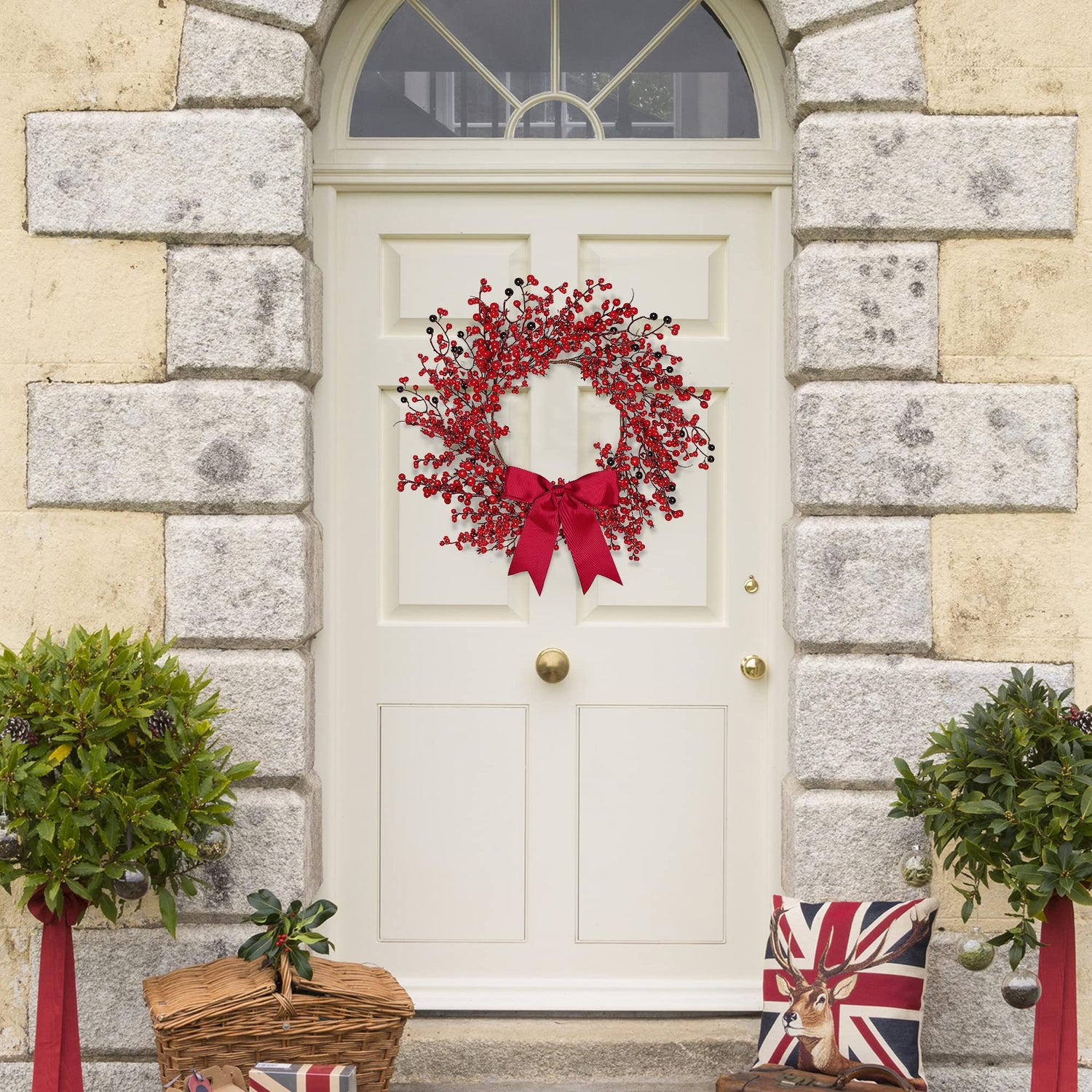 - VERSATILE DECOR:This red berry wreath is suitable for front door, wall, indoors,outdoors,window,fireplace,farmhouse, living room, porch, centerpiece party, wedding, holiday and Christmas, winter,holiday,Thanksgiving, Xmas festival celebration. It will provide your home a strong atmosphere, warm and elegant.