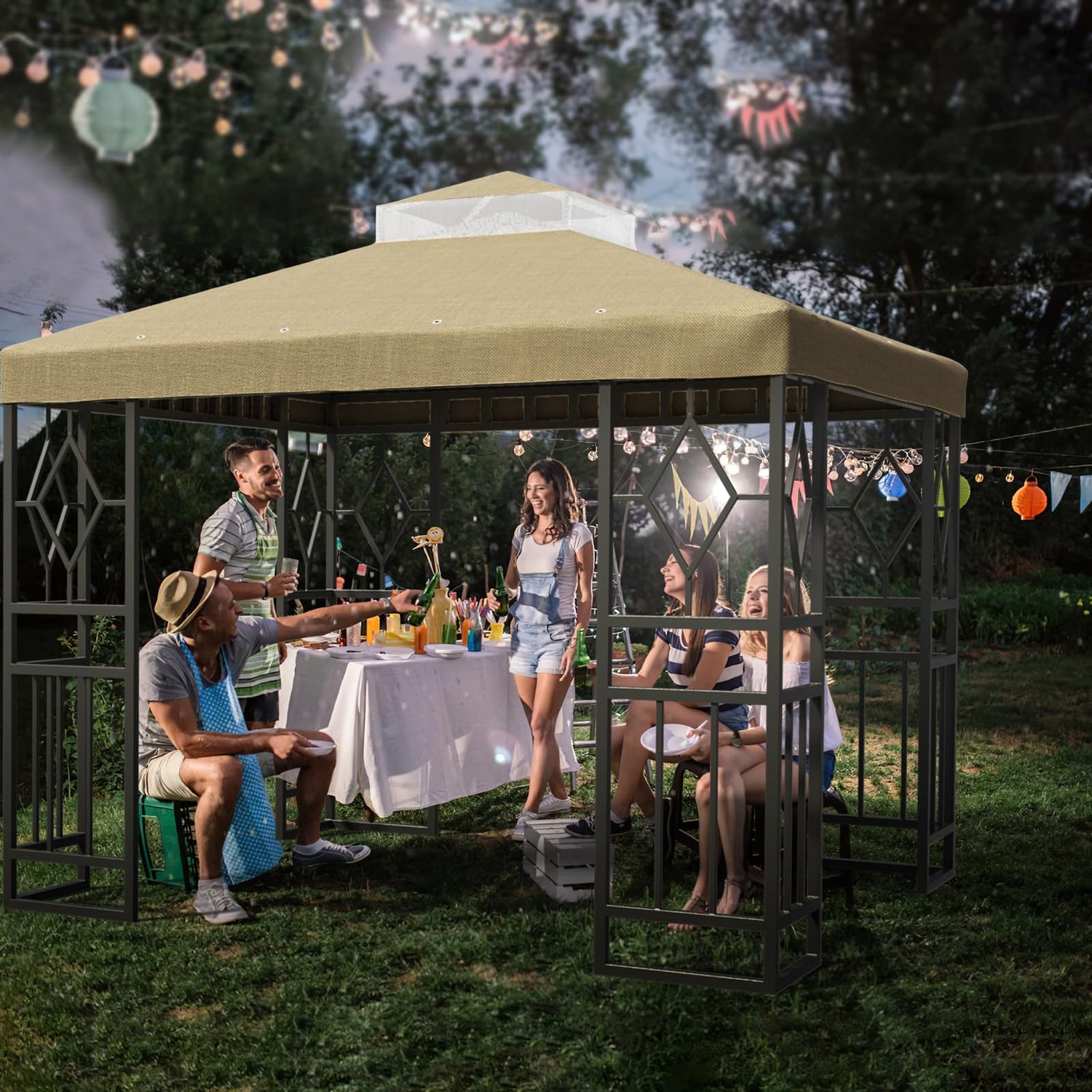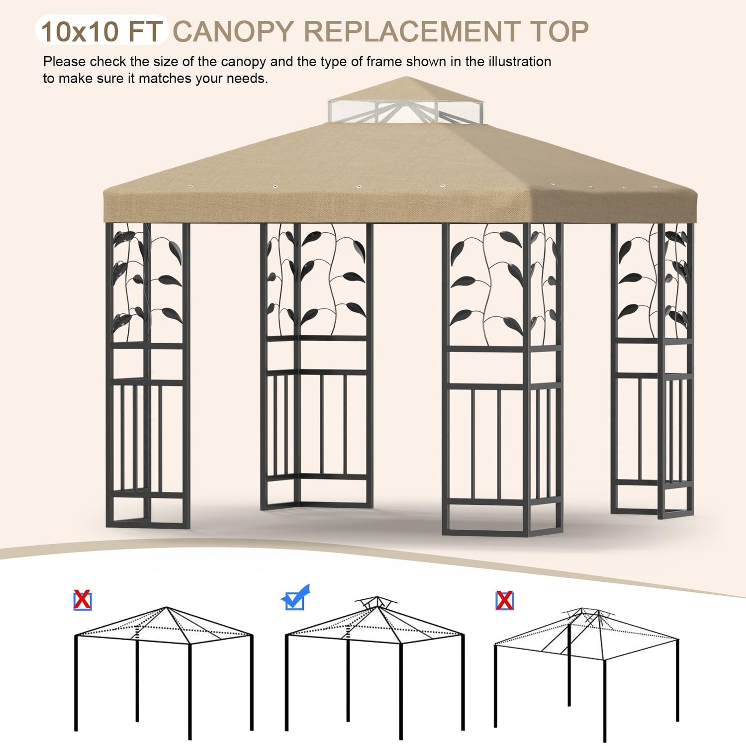 SGmory 10x10 FT Grill Gazebo Canopy Replacement Top, Pavilion Sunshade Polyester Gazebo Cover with Air Vent, Grill Canopy for Yard Patio Garden & Outdoor BBQ (Khaki)