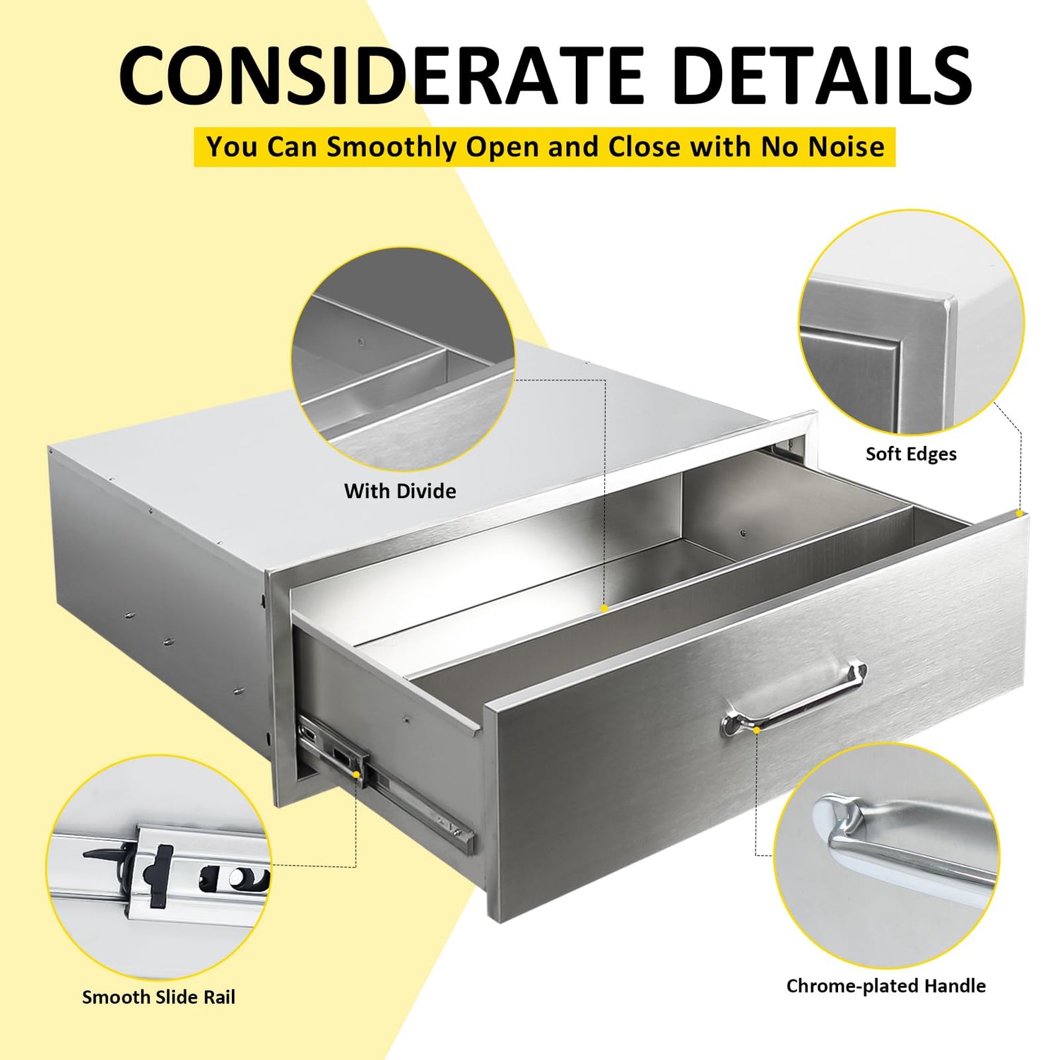 - 【Sleek Design】Featuring a contemporary design and polished finish, the drawers add a touch of sophistication to any outdoor space, elevating the overall look and feel of your outdoor kitchen.