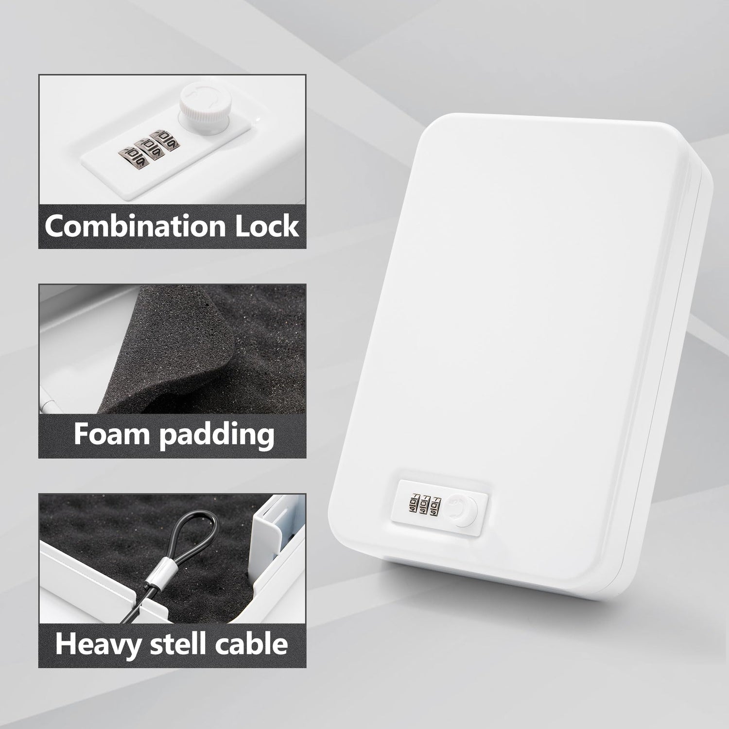 Sgorlds Gun Safe for Pistol, Portable Handgun Lock Box with Combination Lock, Pistol Safe for Car, Home, Travel, 11.5" x7.5" x2.5", White