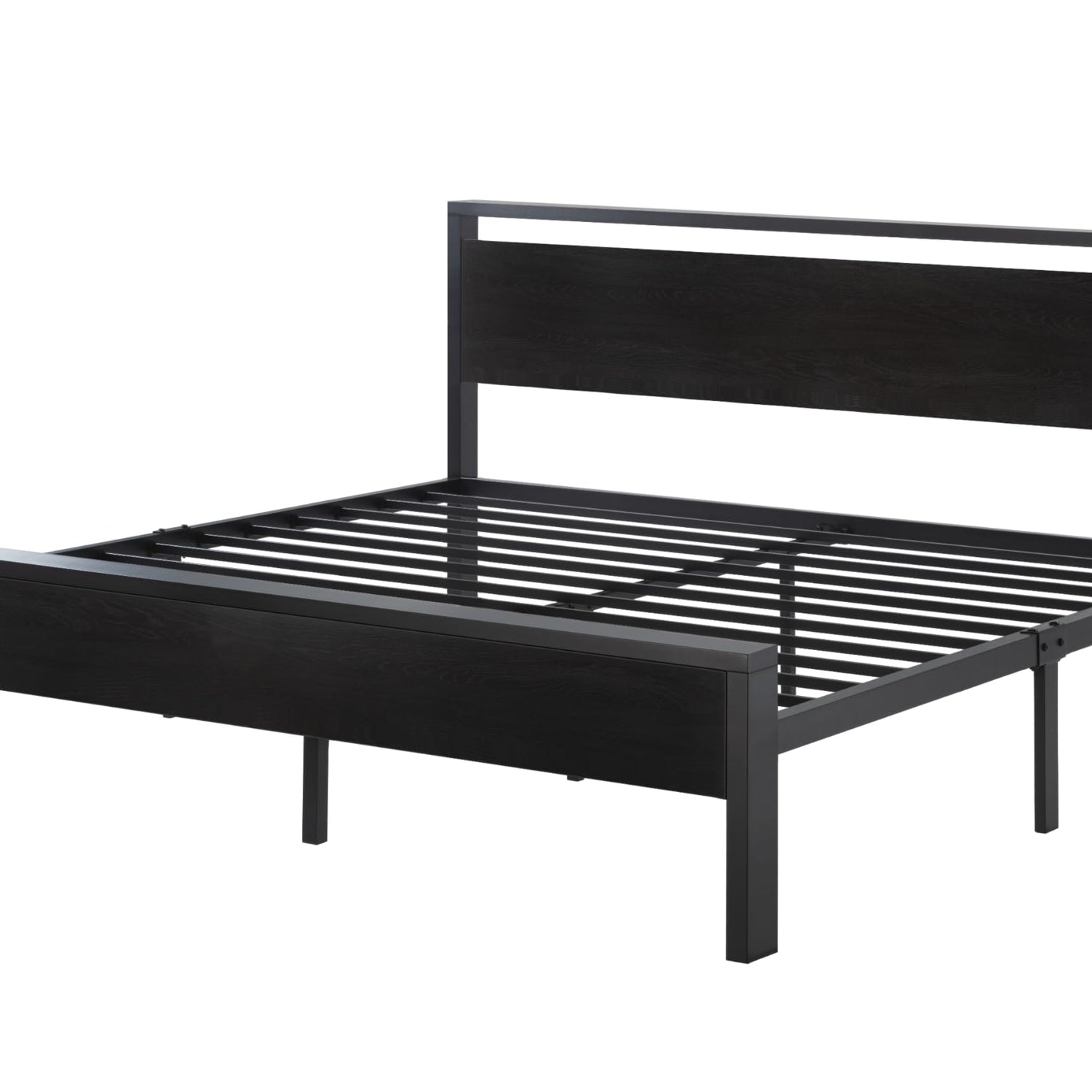 - Unique Design: The combination of rustic style headboard and footboard with retro frosted metal slats creates a strong industrial / rustic flair, adding an industrial and unique touch to your room. The headboard consists of a waterproof & scratchproof wood board
