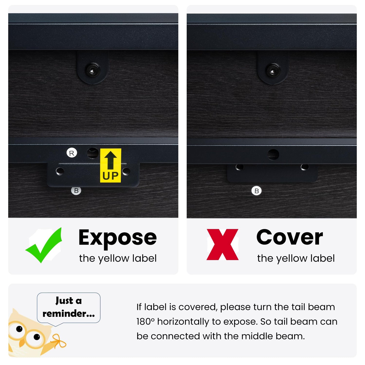 - Notice: The middle beam length of the full is 75.8'', and the queen & king's is 80.8''. When receiving a beam of the correct length but it cannot connect with the head or tail tightly, it is possible that the head bar or tail bar is installed incorrectly. Please make sure the label direction is "UP" and exposed, and check the wood board is on the correct side. If you encounter any difficulties with installation, please do not hesitate to contact us for the installation video