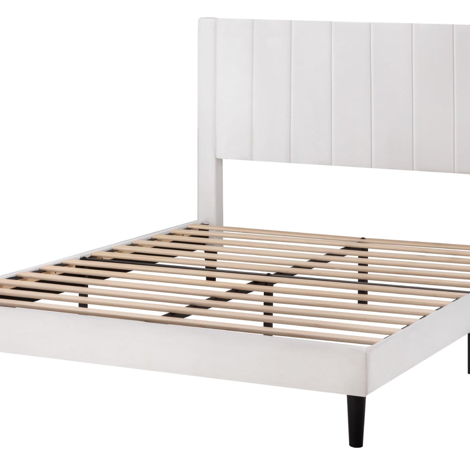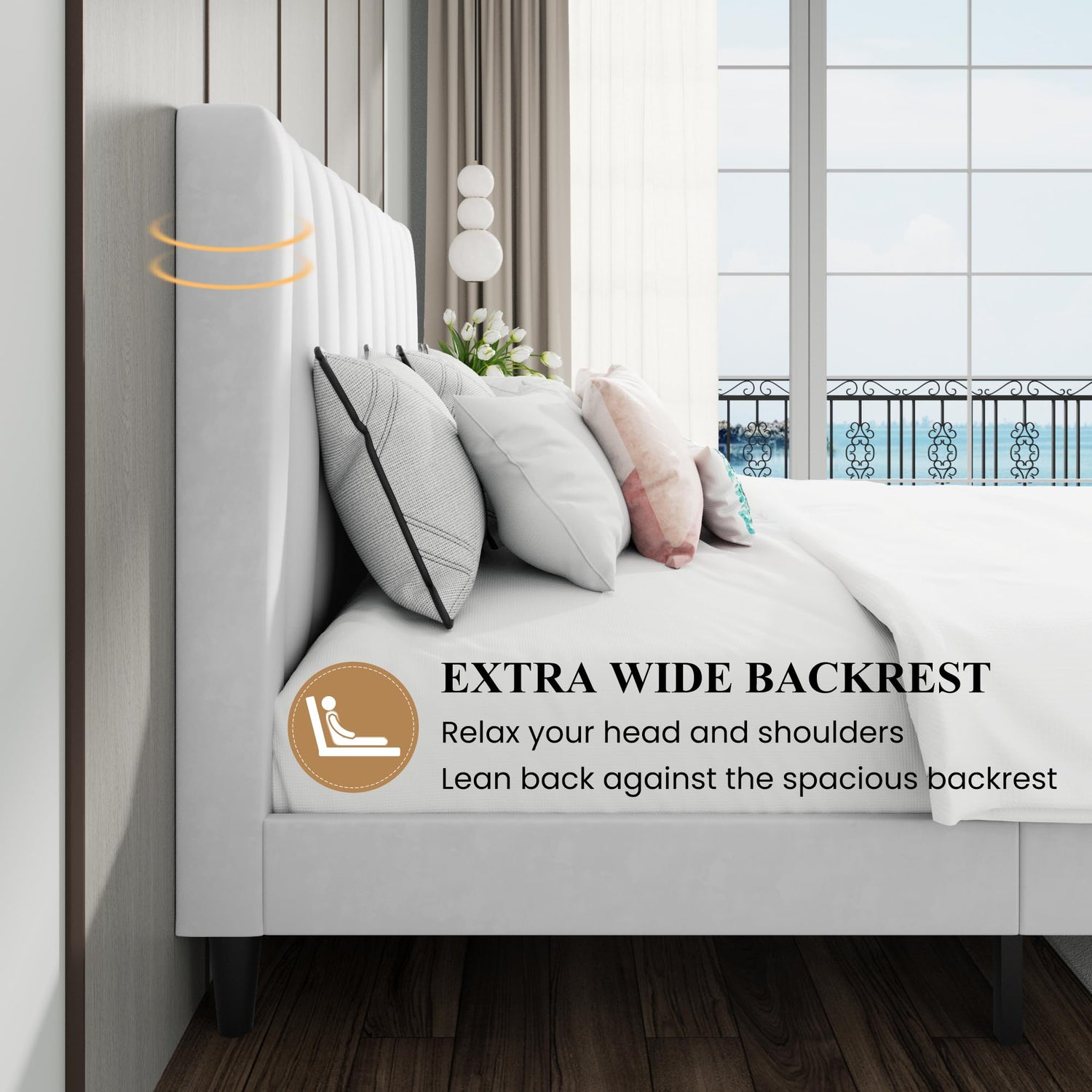 SHA CERLIN Full Bed Frame/Velvet Upholstered Platform Bed Frame with Headboard/Strong Wood Slats Support/Mattress Foundation/No Box Spring Needed/Easy Assembly/White
