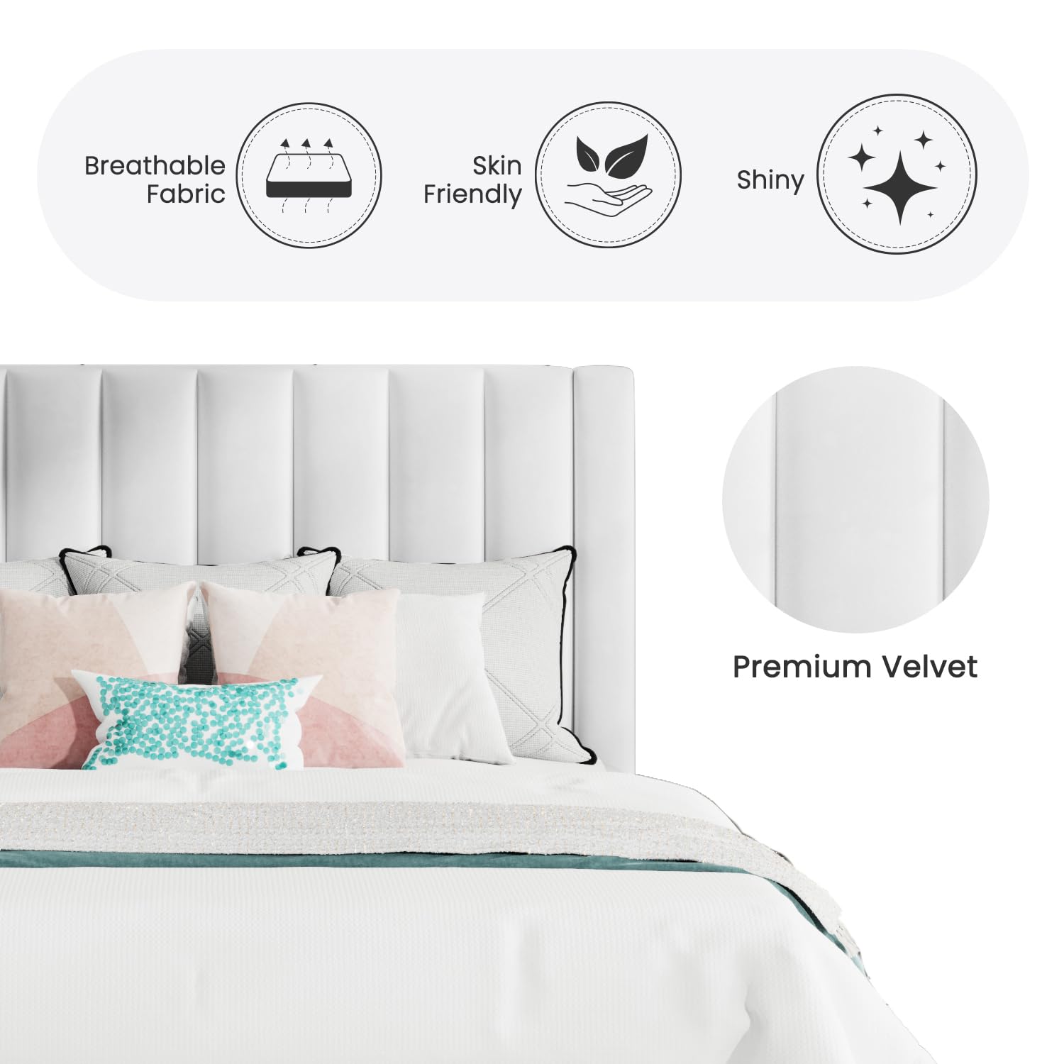 - VELVET BED JUST FOR YOU : Upholstered in plush velvet, our luxurious bed is the best choice for your classy life,complete with upholstered side rails and a padded queen headboard,finally you can have style and comfy at the very same time