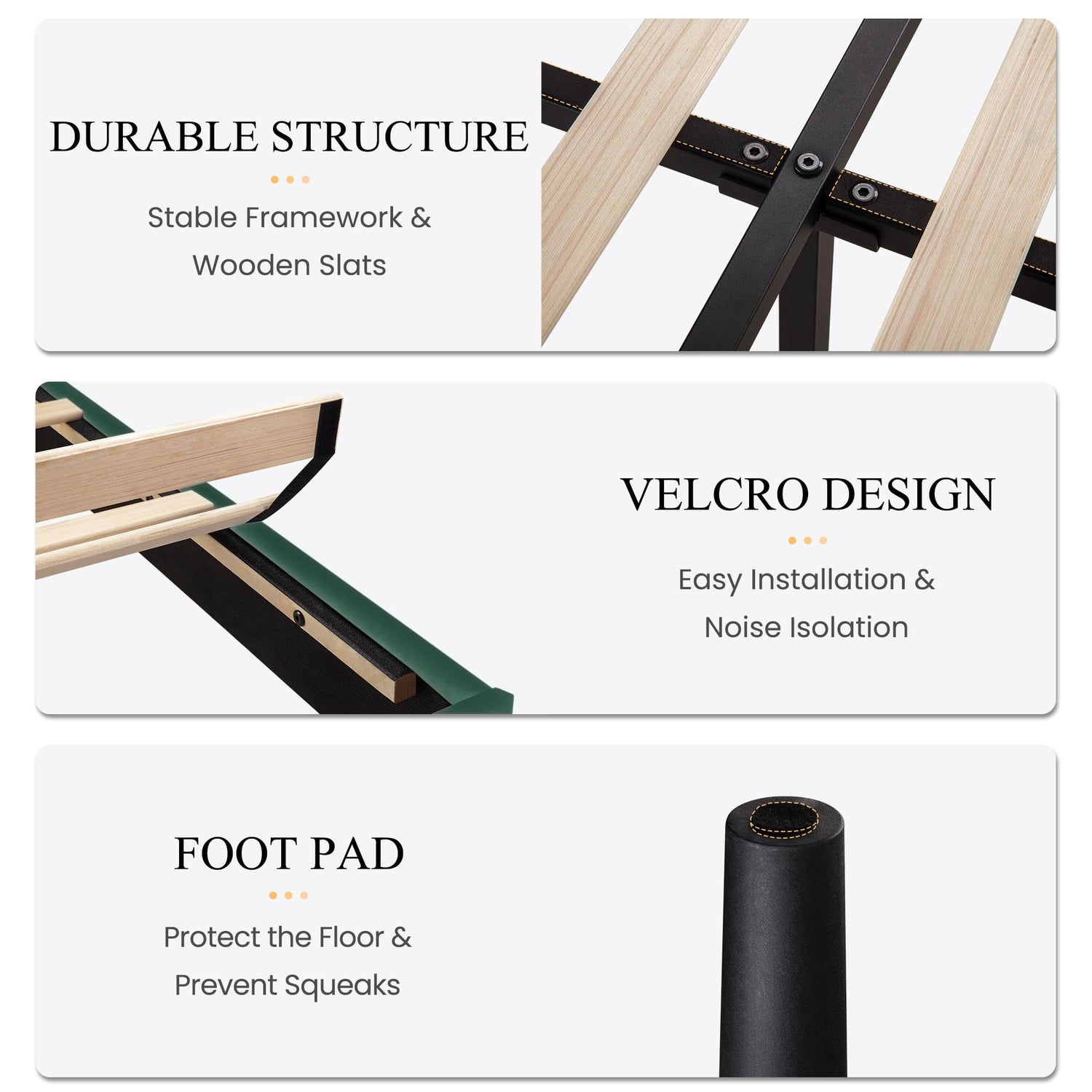 - Easy Assembly: All parts and tools are smartly packed into one box. The assembly of the platform bed could be finished within one hour