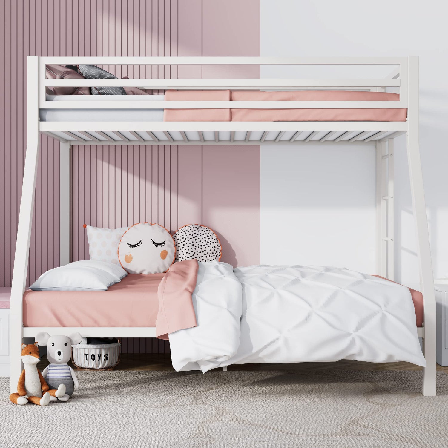 Transform your bedroom with the SHA CERLIN Twin Over Full Metal Bunk Bed, designed in a sleek Matte White finish. This modern bunk bed effortlessly combines style, functionality, and safety, making it an ideal choice for any room.