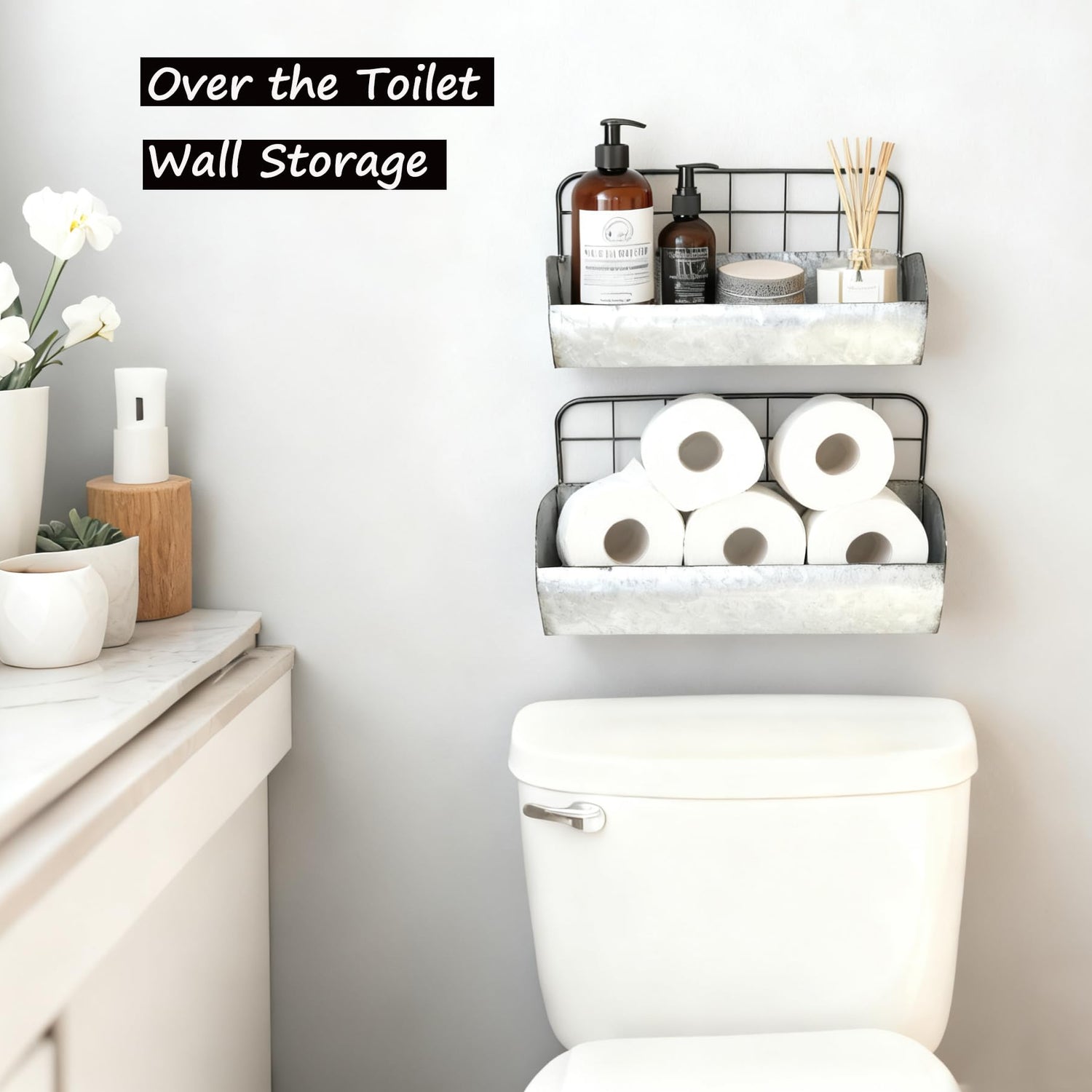 ShabbyDecor Galvanized Metal Farmhouse Wall Storage Holder Rustic Tin Shelves for Kitchen Laundry Room Bathroom Metal Hanging Wire Basket Set of 2