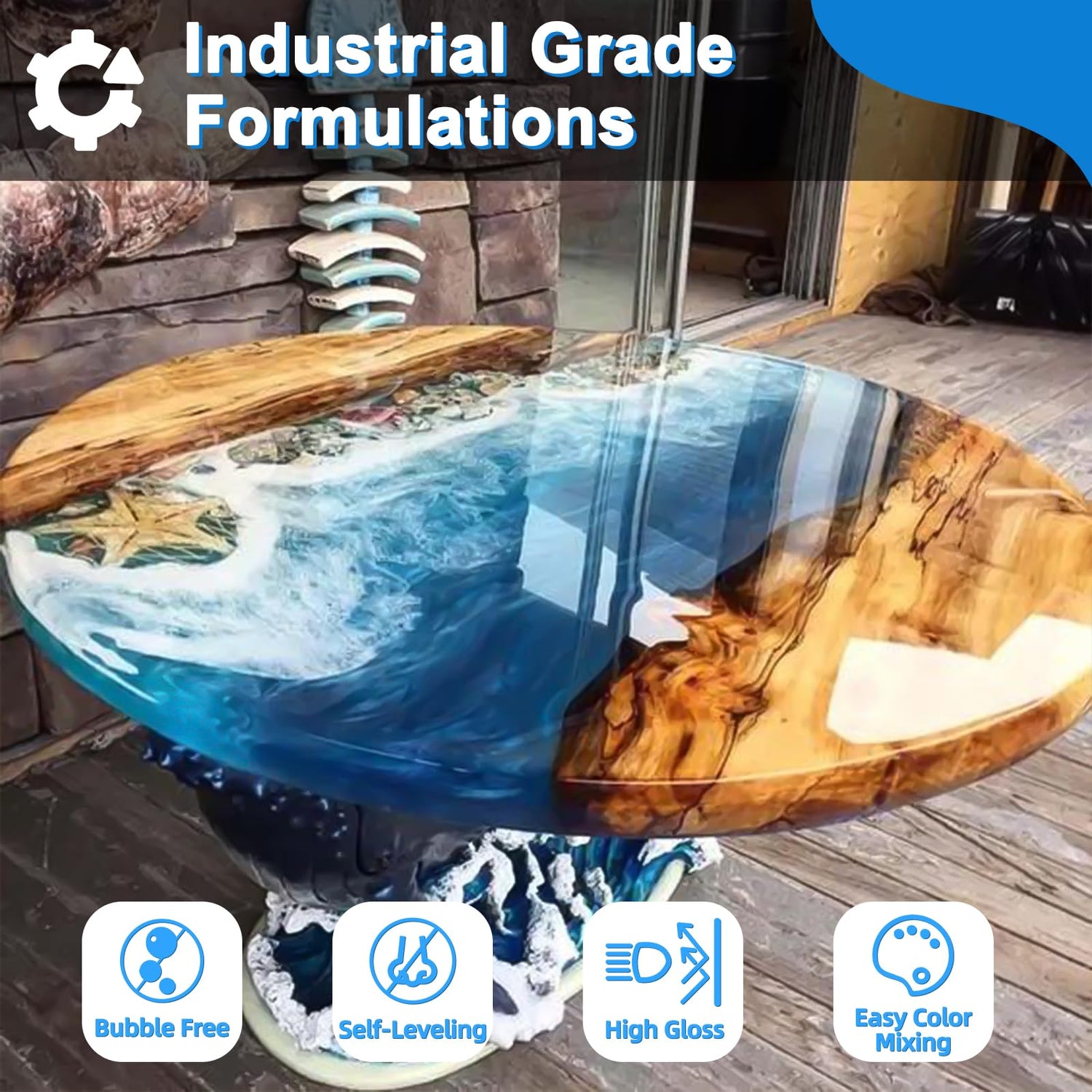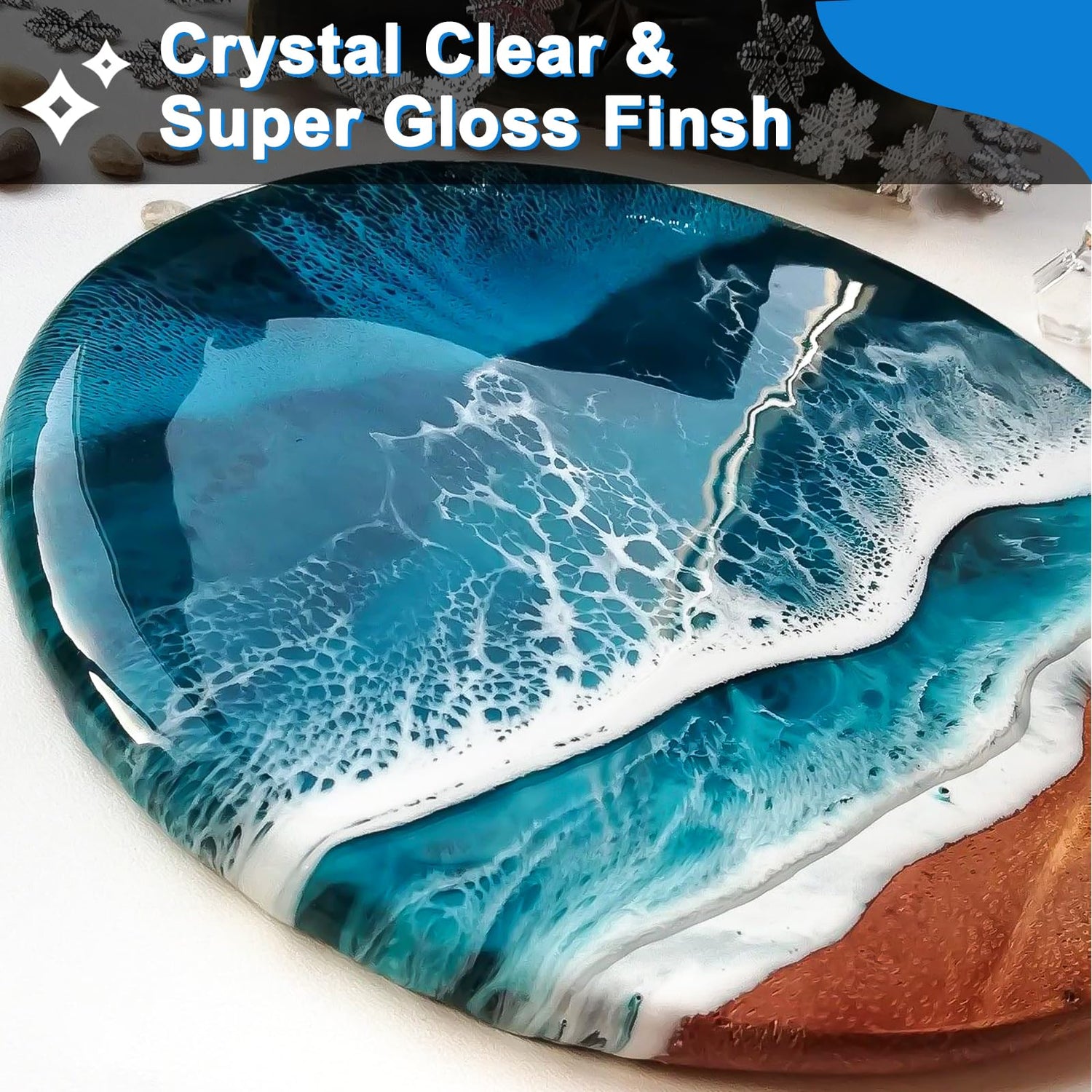 - CRYSTAL CLEAR & HIGH-GLOSS FINISH: Our Epoxy Resin for Table Top delivers a crystal clear, ultra-glossy finish without imperfections or the need for polishing.Achieve a radiant, transparent surface that enhances the vibrancy of your creations, bringing your artistic vision to life in every stroke.
