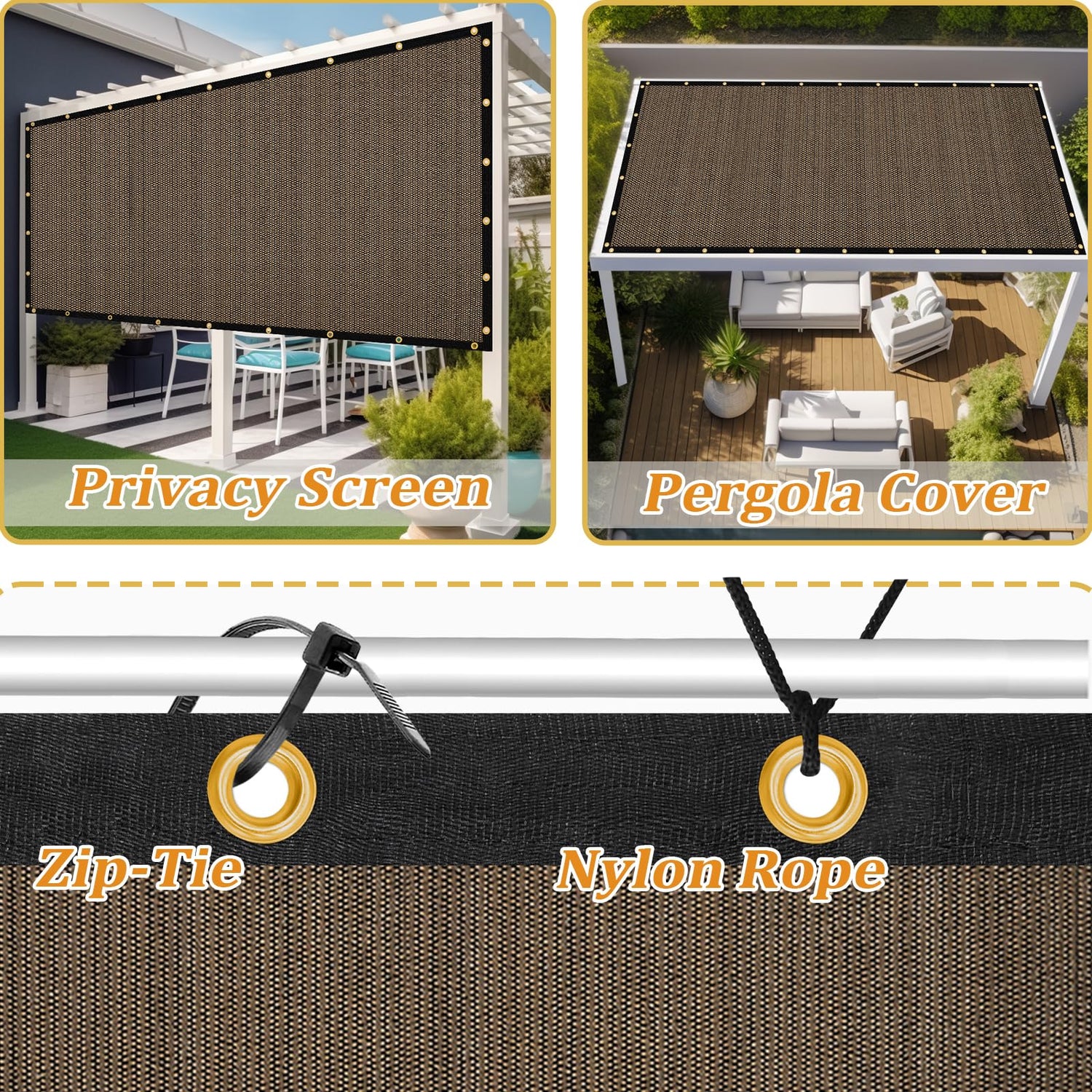 - [Easy to Install] With included grommets on each sides every 2 ft space and fixing accessories, you can easily attach the pergola shade cover to various structures while ensuring uniform stress. Whether you're looking to cover your backyard, carport, or playground, you can have it up and providing shade in no time.