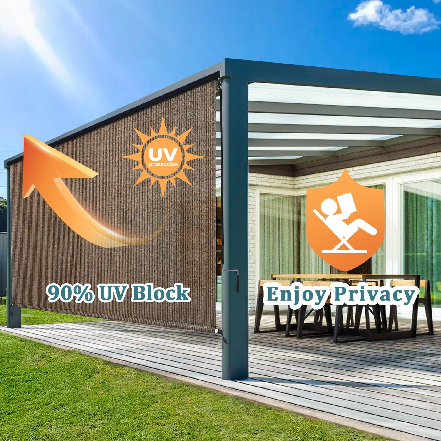 - Better Occasions: This 6' W x 8' H roller shade, is made of heavy-duty HDPE material, so that block the heat from the sunlight up to 90%. Therefore, the roller shade could help protect the furniture outside and inside, as good stuff in the patio, pergola, porch, media room, and other outside spaces.