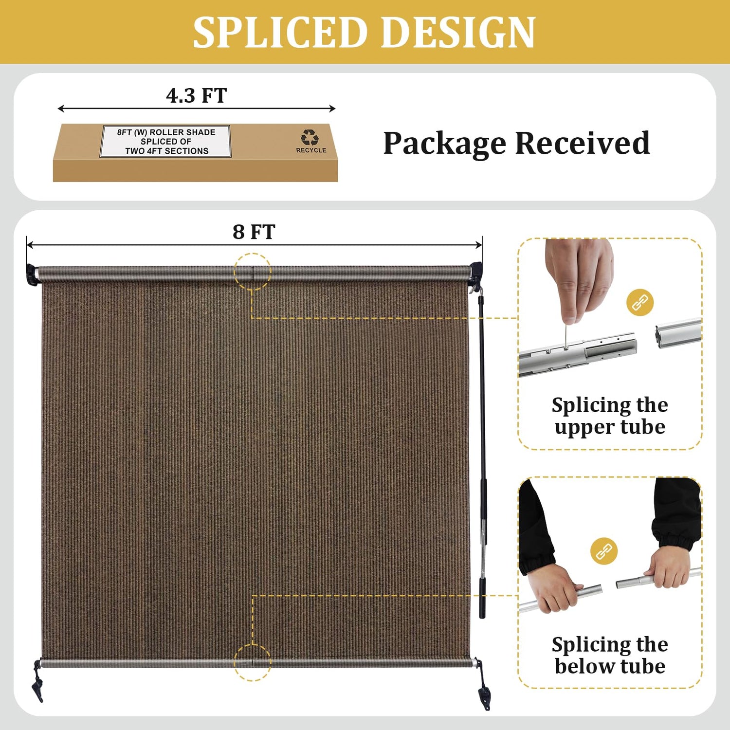 Shade&Beyond Outdoor Roller Shades 8' W x 8' H Patio Roll Up Blinds 220GSM Shade Cloth Roll for Porch Gazebo Pergola Balcony Backyard, Spliced of Two Sections, Mocha