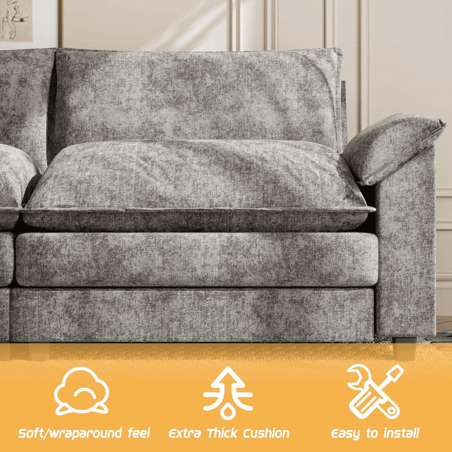 Details: Shahoo Sectional Modular Sofa, U Shaped Chenille Fabric Couch with High Supportive & Soft Sponges and Removable Ottoman, Sleeper Comfy Upholstered Furniture for Living Room, Grey