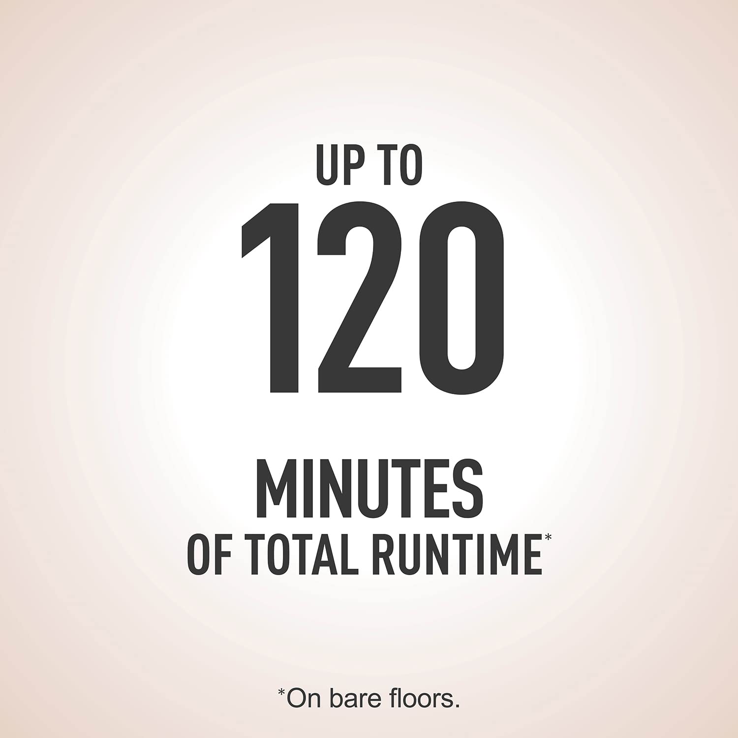 - UP TO 120-MINUTE RUNTIME: Whole-home, floor-to-carpet cleaning for up to 2 hours.