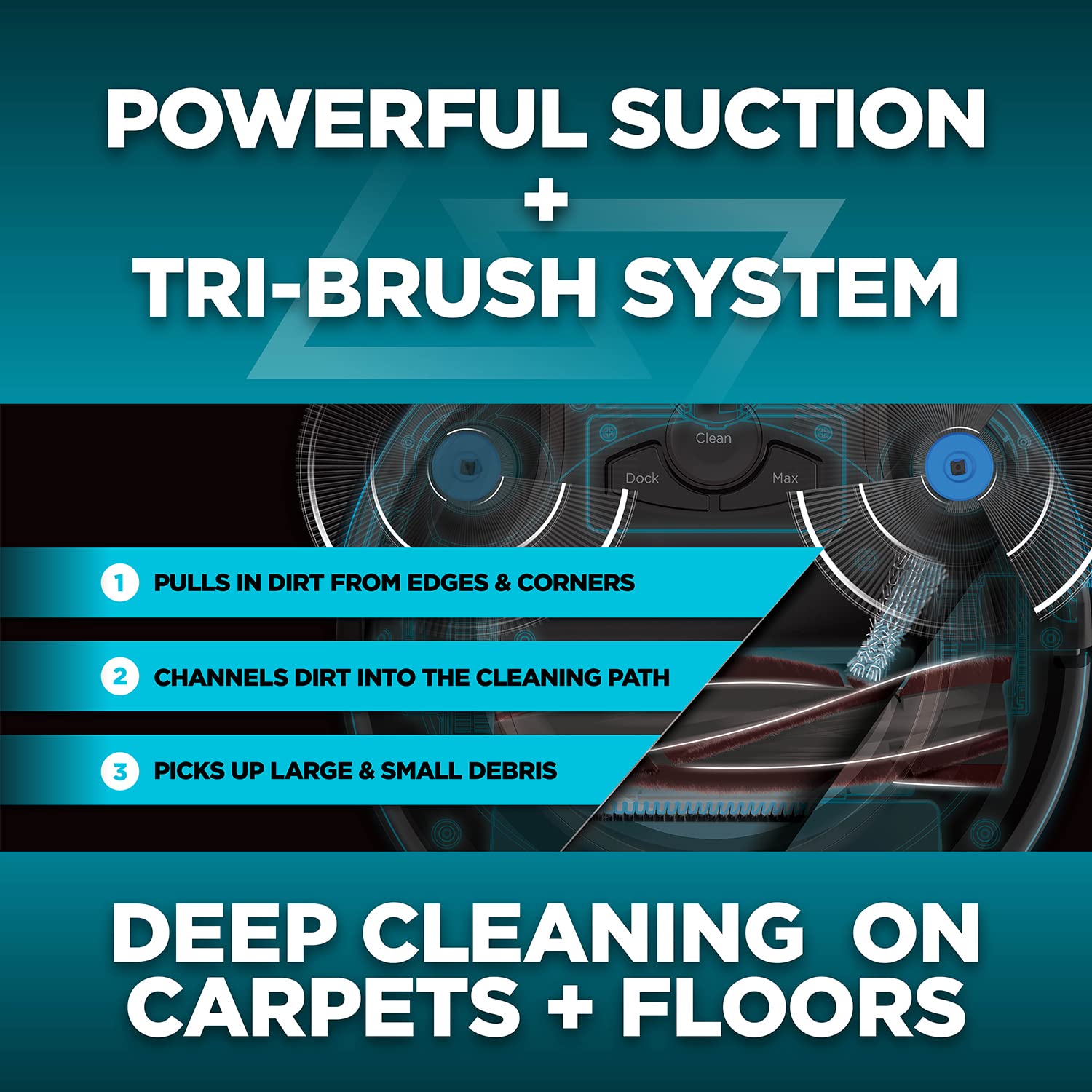 - THREE BRUSH TYPES. ONE POWERFUL CLEAN: Tri-Brush System combines side brushes, channel brushes, and a multi-surface brushroll to handle debris on all surfaces.