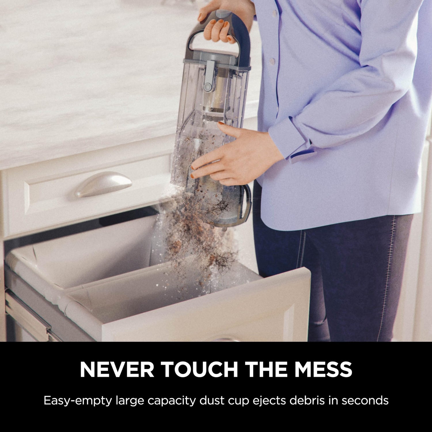 - XL DUST CUP CAPACITY: Easy-to-empty .64 quart dust cup for extended cleaning without interruption.