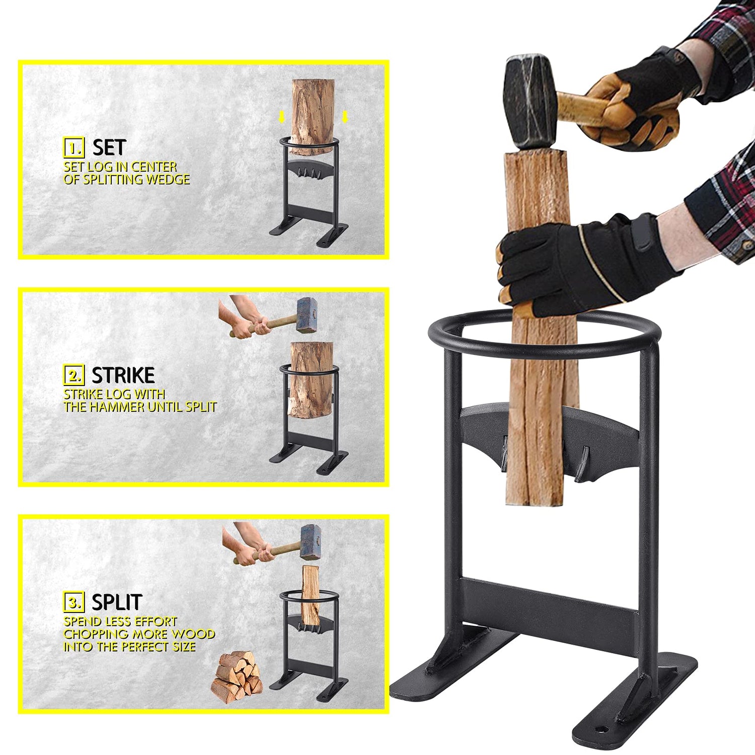 - 【SAFE AND EASY】A safe and breeze way to split wood with no moving parts or sharp blade to hurt your hand, efficient and safer than using a dangerous axe, splitting maul.