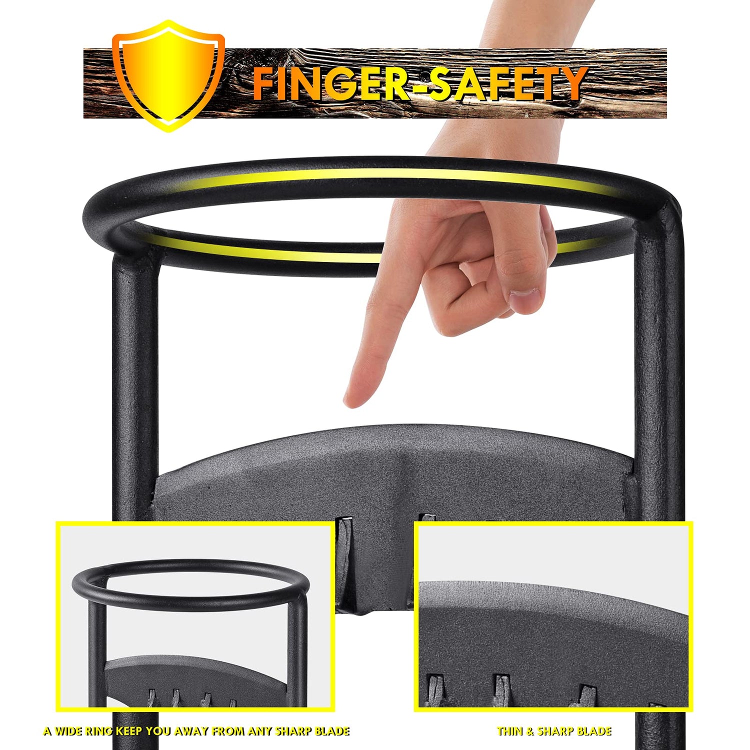 - 【STABLE DESIGN 】The kindling splitter structure is simple and stable, the round top makes comfortable in the hand, the 6.3 inch inner diameter top ring allow you to split larger pieces of firewood. With the 2 boltholes on the base it can be fixed to a stump or other places, also can be adjusted according to the user height.