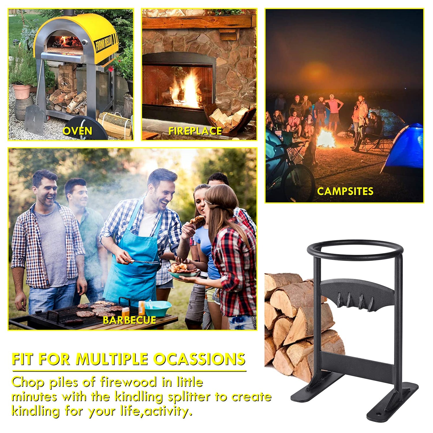 - 【EASY TO CARRY】Weight only 9 pounds, it can be easily and effortlessly carried around a campfire, on a camping trip, or used in your backyard! Just need to a wood splitter, you can get a pile of firewood easily.