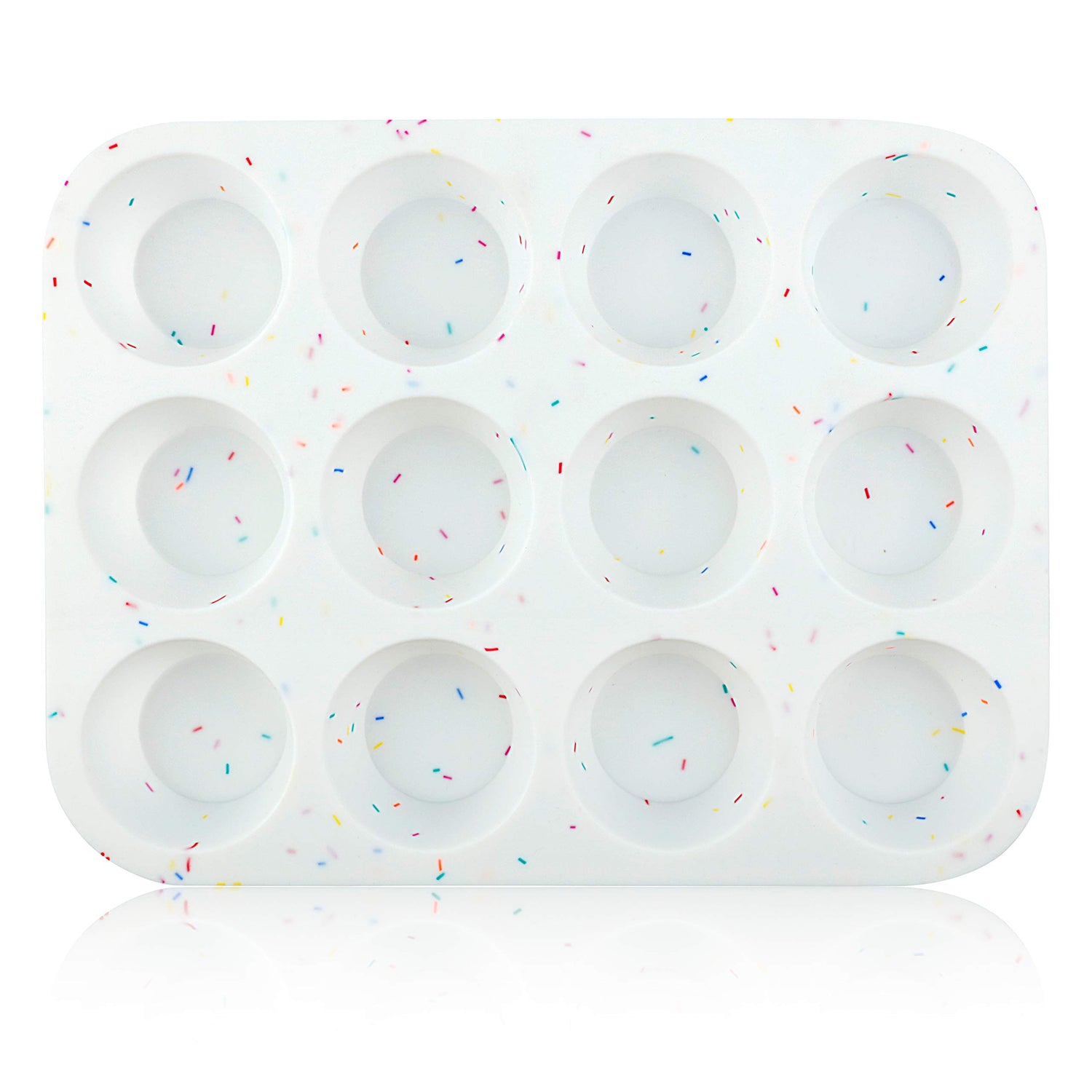 - 100% FOOD-GRADE SILICONE: This fun confetti Muffin Pan gives you the simplicity and safety you need for baking-without casuing confusion.It is made of 100% food grade silicone, and bring muffin pans more flexible and durable. This Muffin Tin is Tasteless, European LFGB standard, BPA free