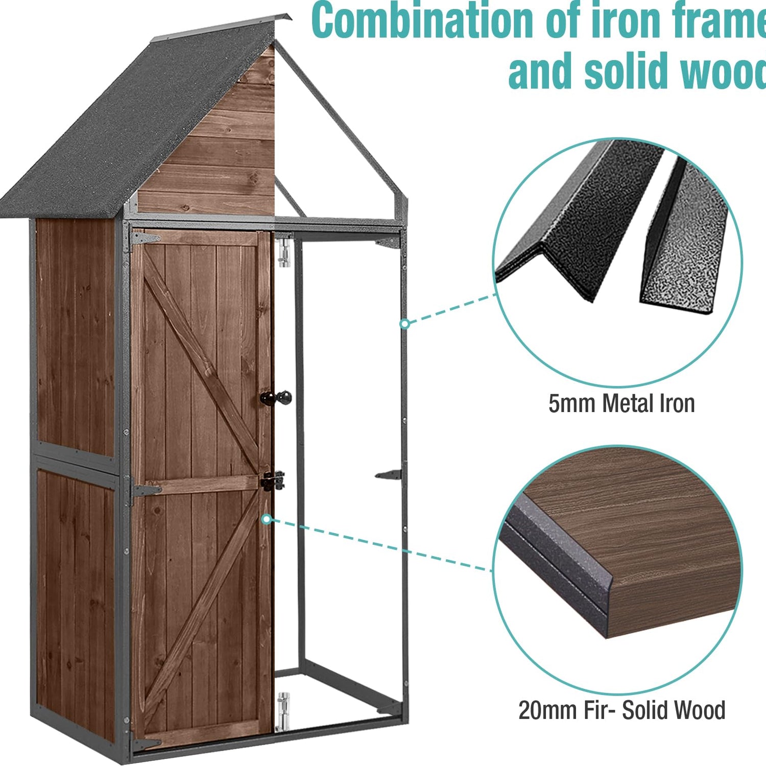 - Exceptional Structure: A perfect blend of sturdy metal frames and durable cedar wood assures the robustness and longevity of this storage shed, making it an ideal addition to your outdoor living space.