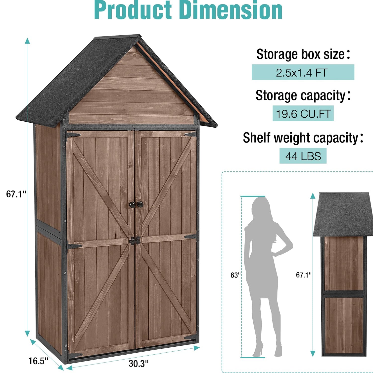 - Large Capacity: Offering a generous space of 2.5 x 1.4FT, this outdoor shed accommodates a variety of items, from tools to garden accessories, bicycles to outdoor toys.