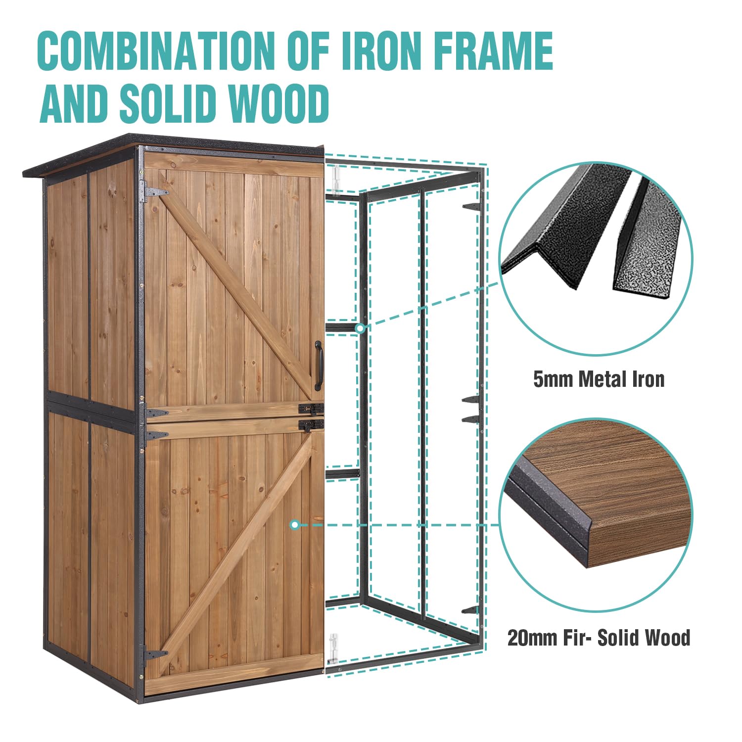 - Superior Structure: This storage shed is a perfect blend of sturdy metal frames and durable cedar wood, ensuring robustness and longevity. It's the perfect addition to your outdoor living space.