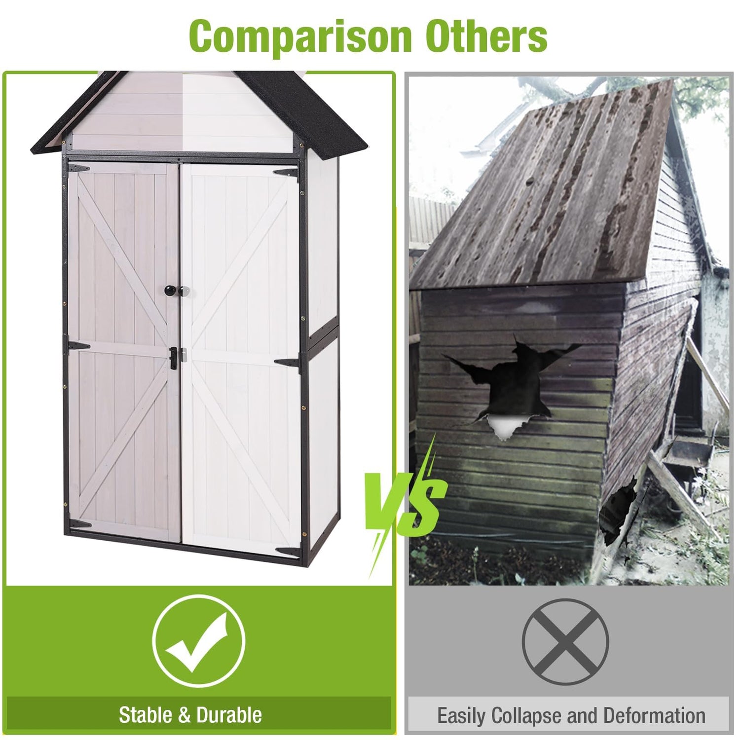 - Sturdy and Durable Structure: The storage shed features an all-around metal frame and fir wood material, offering superior stability and durability. The metal frame not only enhances the overall structural strength but also provides rust protection. The fir wood adds extra safety, ensuring your items are protected under various weather conditions.
