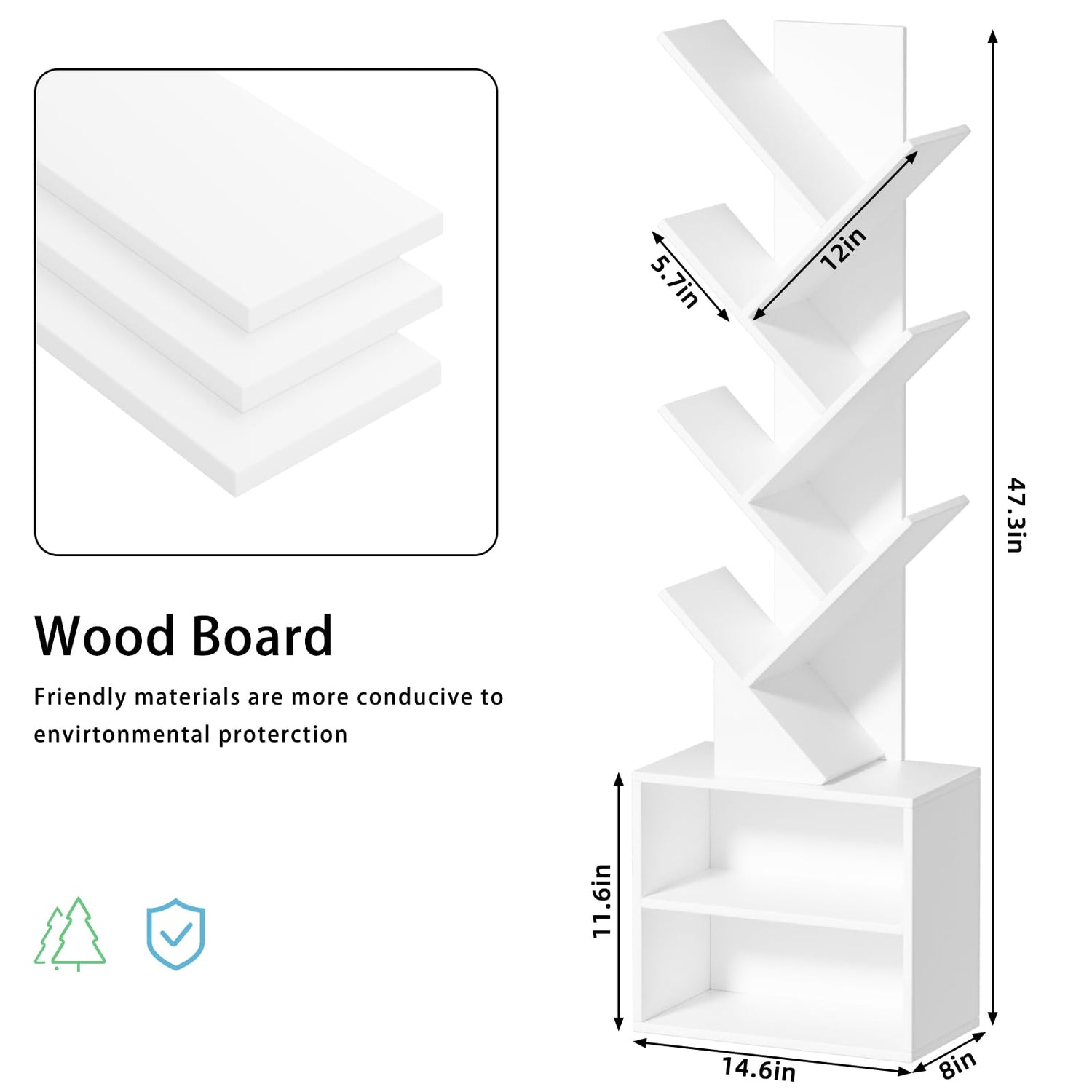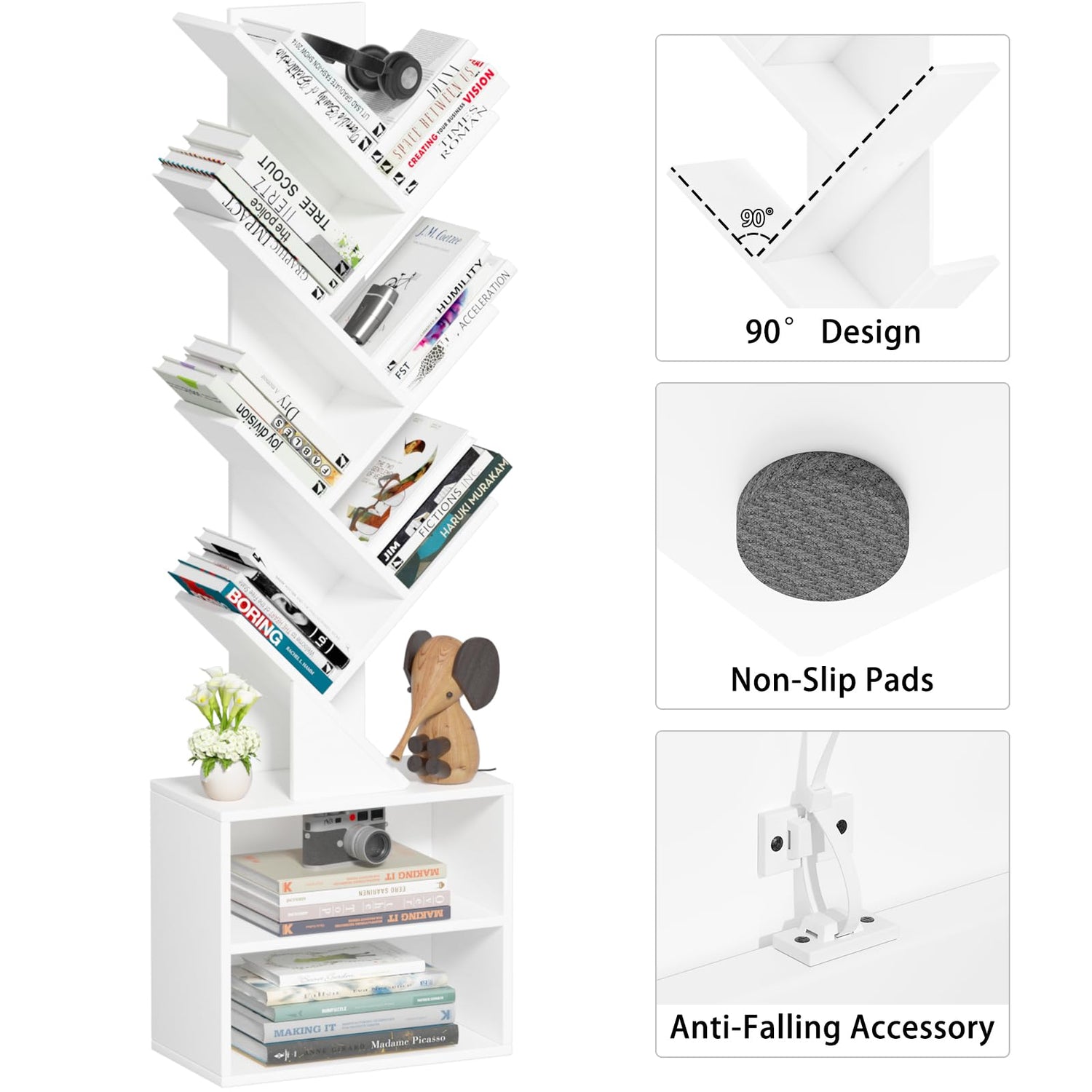 - [Anti-Tip Design for Added Safety] This bookshelf features an all-wood, 10-shelf tree-shaped cabinet design, as well as an anti-tip design that ensures its stability and durability. It's 100% safe for homes with children or pets.