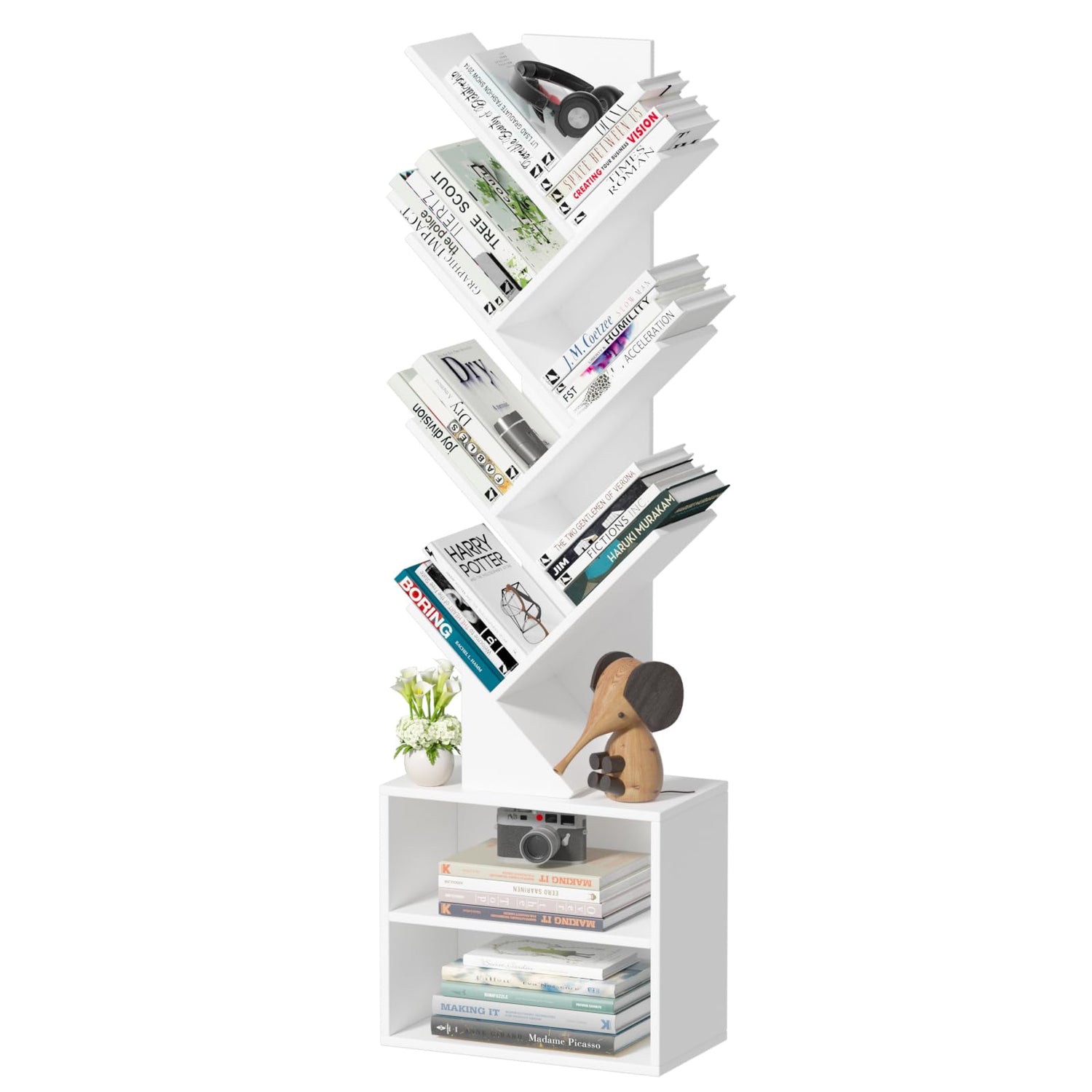 - [10-Layer tree bookshelf] The 10-layer design of this bookshelves provides you with more options for organizing your books. The vintage style and charming design of this tree-shaped book shelf make it a practical piece of furniture that also doubles as an attractive art piece in your home.