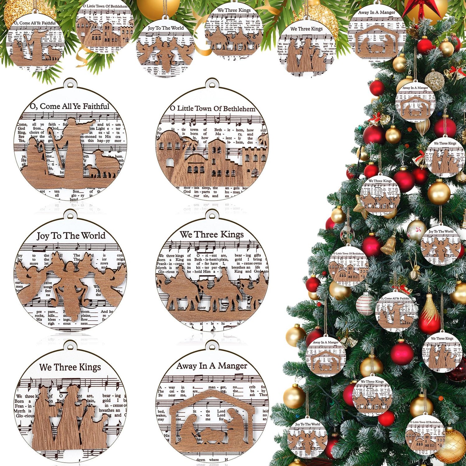 Shellwei 24 Pcs Christmas Nativity Story Wooden Ornaments Set Bulk Christian Music Sheet Nativity Ornament Nativity Scene Hanging Ornaments Xmas Tree Ornaments Religious Gift for Family(Delicate)