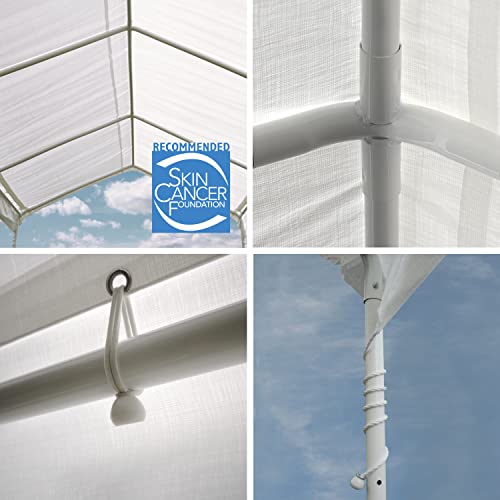 - EASY ASSEMBLY: Can be assembled in two hours with the effort of two adults with wedged piping for the canopy legs and a patented Twist-Tite tensioning system that tightens the cover, secured with wide foot plates on each of the 8 legs