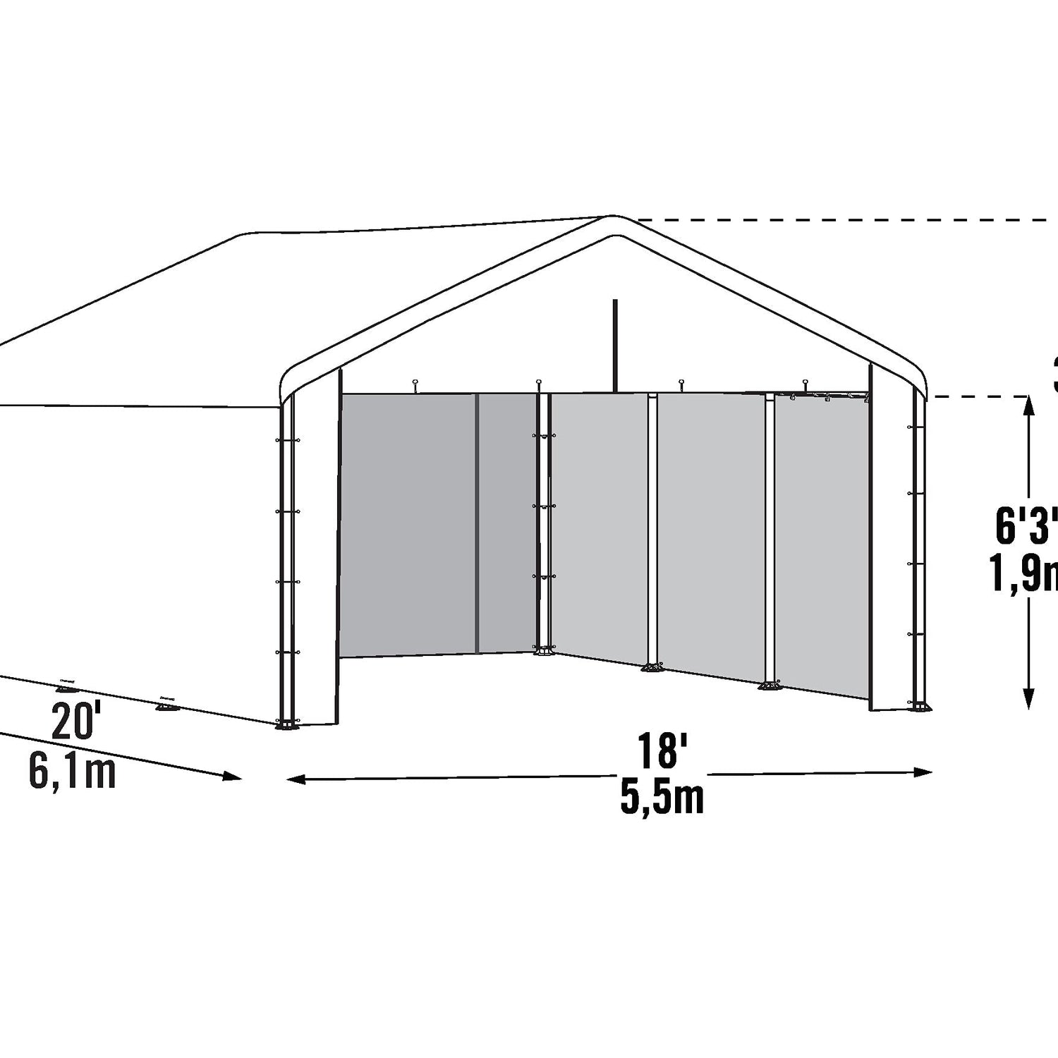 Details: 26775 Size: 6'3" H x 18' W x 20' D, Color: White Features: -Waterproof and UV-resistant. -Construction Material: Polyethylene fabric. -TFrame and canopy pictured not included. -The walls are attached together by the use of bungee cords to the frame, all of which are included. -1 casing wall can be used at a time. Product Type: -Enclosure casing. Dimensions: Size 6'3" H x 10' W x 20' D - Overall Width - Side to Side: -10". Size 6'3" H x 10' W x 20' D - Overall Depth - Front to Back: -20". Size 6'3" H x 12' W x 26' D - Overall Height - Top to Bottom: -6.3". Size 6'3" H x 12' W x 26' D - Overall Width - Side to Side: -12". Size 6'3" H x 12' W x 26' D - Overall Depth - Front to Back: -26". Size 6'3" H x 12' W x 30' D - Overall Depth - Front to Back: -30". Size 6'3" H x 18' W x 30' D - Overall Width - Side to Side: -18". Size 6'3" H x 18' W x 40' D - Overall Depth - Front to Back: -40".