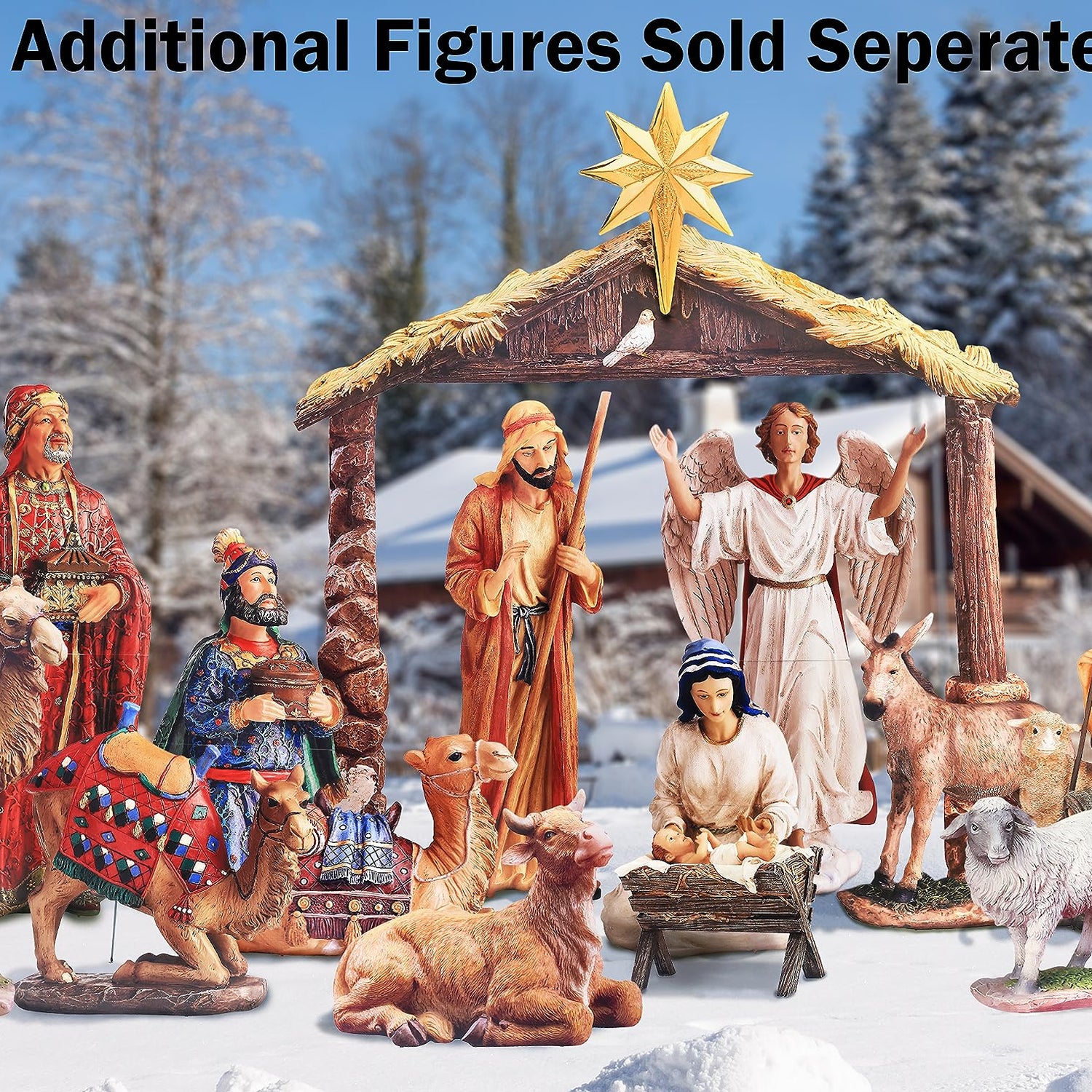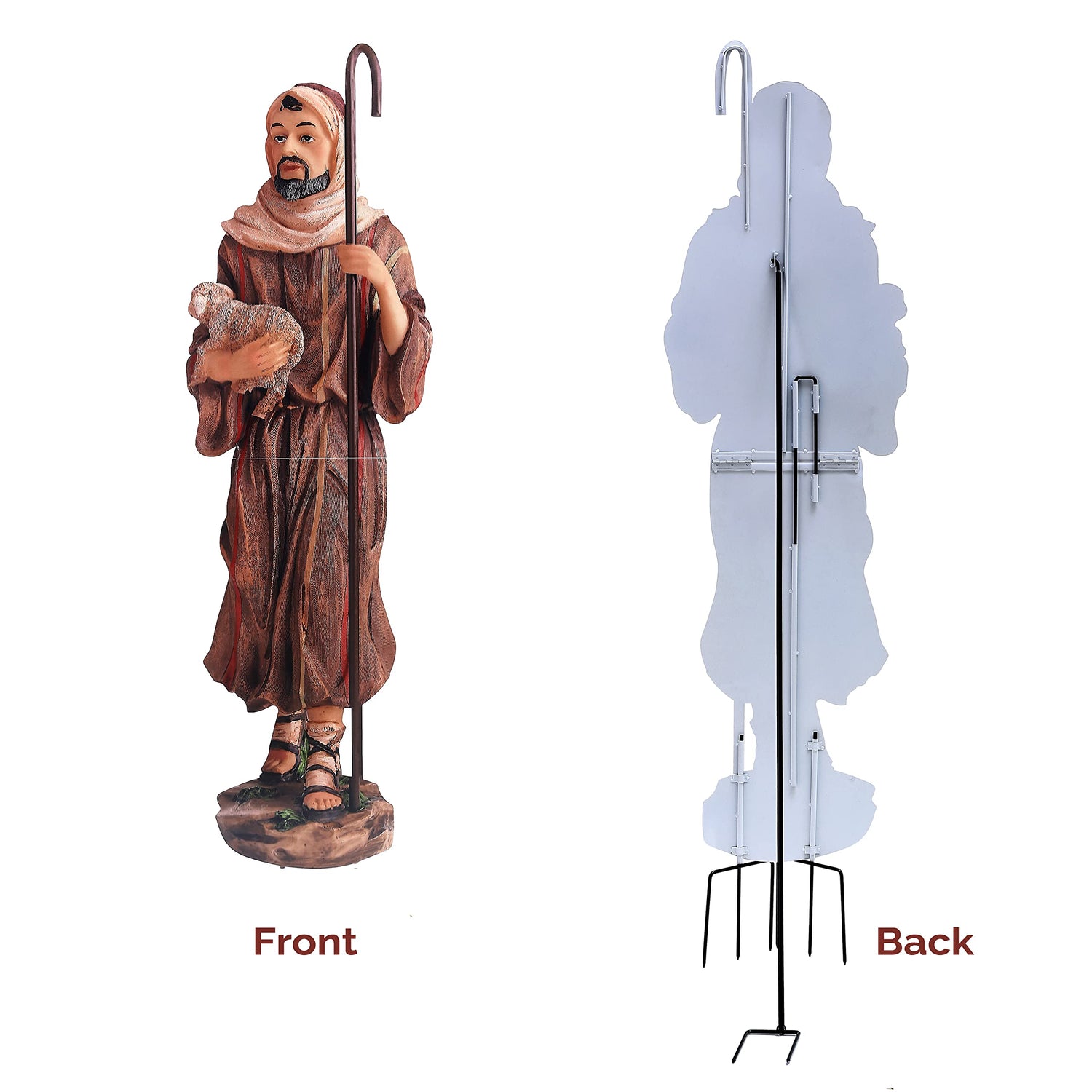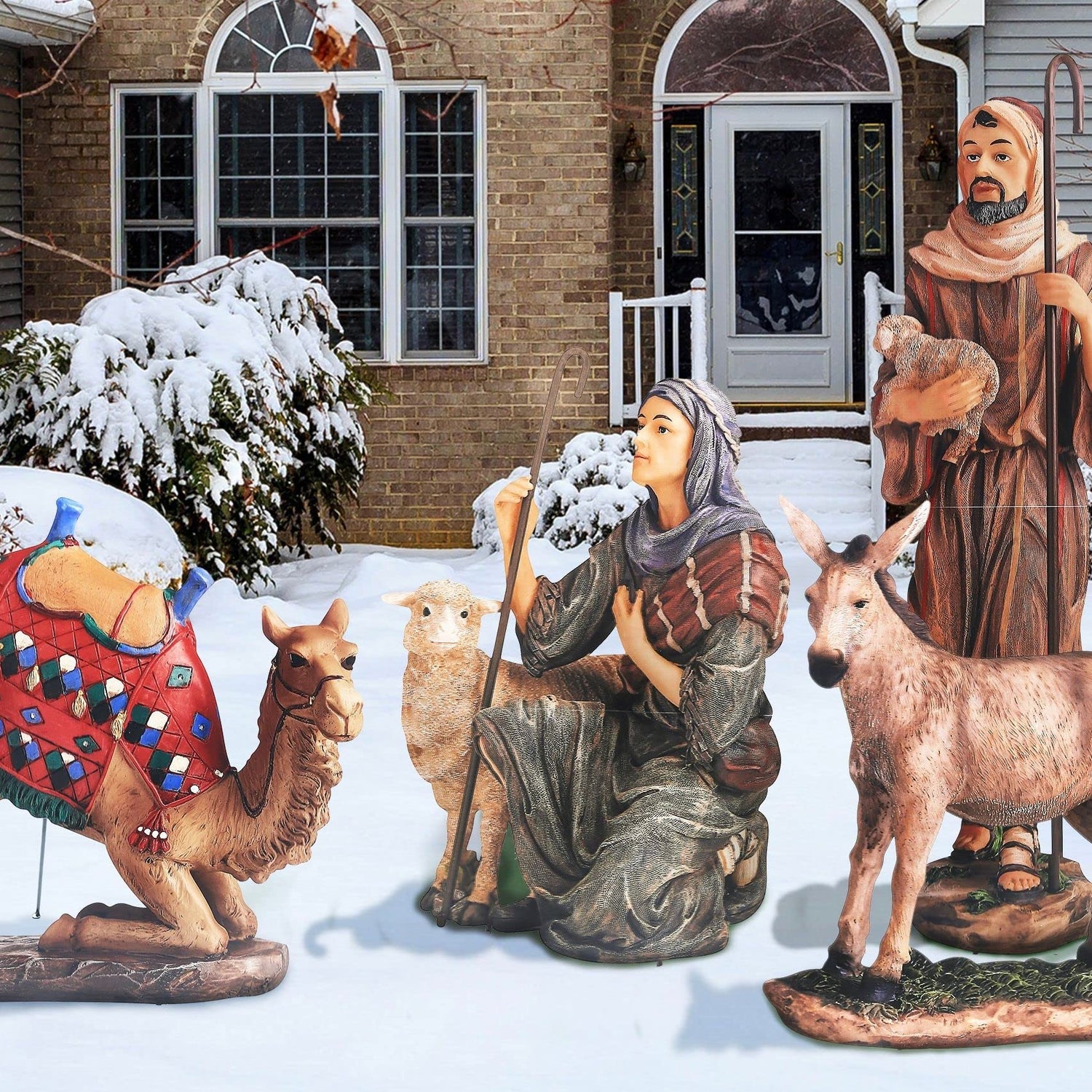 - * Impressive 4 Piece Set - This set includes two Shepherds, a Donkey, and a Kneeling Camel. The standing shepherd measures 49 inches tall, the kneeling shepherd 31 inches, the kneeling camel 27 inches, and the donkey 24 inches. These pieces add visual interest and enhance the storytelling of your nativity display.