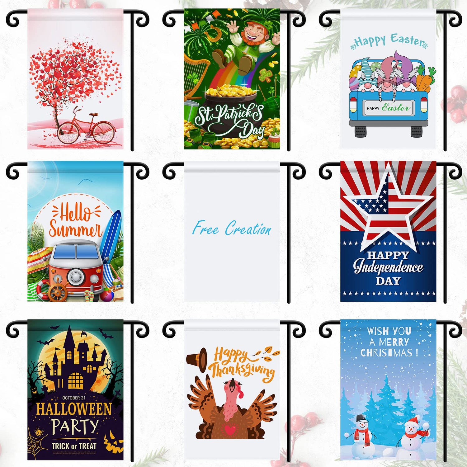 Shimeyao 54 pcs Blank Sublimation Flags DIY Lawn Garden Flags Blank Heat Transfer Banner 11.8 x 17.7 Inches Sublimation Polyester Lawn Flag for Christmas Halloween Thanksgiving Festival Indoor Outdoor