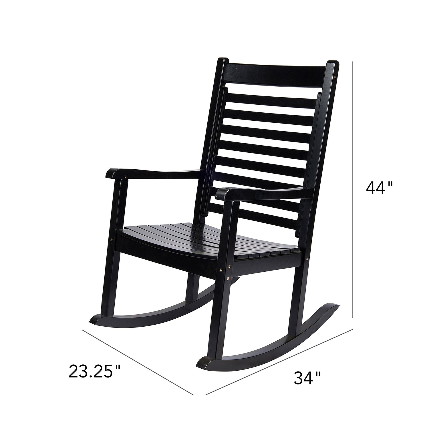 Shine Company Modern Wood Rocking Chair, Ergonomic Wide Seat Porch Rocker, Black