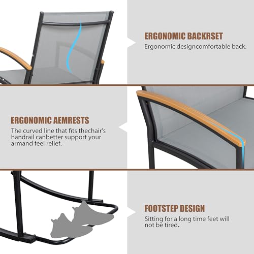 Shintenchi 3 Piece Outdoor Rocking Bistro Set, Textilene Fabric Small Patio Furniture Set, Front Porch Rocker Chairs Conversation Set with Table for Lawn, Garden, Balcony, Poolside (Light Gray)
