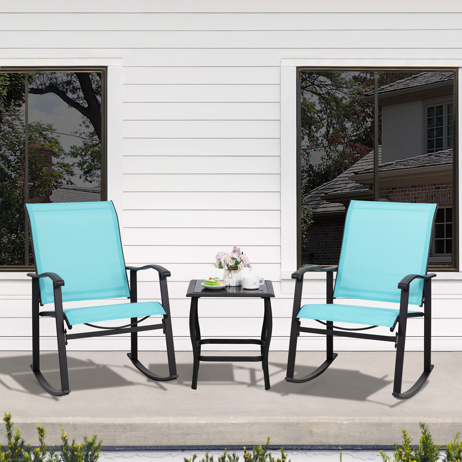 - Wide application: This small patio furniture set includes one bistro coffee table and 2 rocking chairs. The simple looking and solid color making it suitable for yard, poolside, lawn, balcony, garden and front porch.