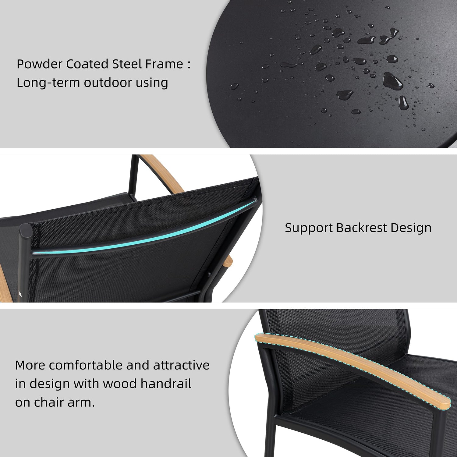 Shintenchi 3 Pieces Patio Bistro Sets, Outdoor Textilene Fabric Conversation Bistro Set, Textilene Fabric Front Porch Chairs Small Patio Furniture Set with Table for Lawn,Garden,Balcony (Black)