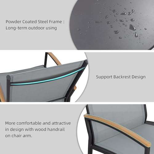 Shintenchi 3 Pieces Patio Bistro Sets, Outdoor Textilene Fabric Conversation Bistro Set, Textilene Fabric Front Porch Chairs Small Patio Furniture Set with Table for Lawn,Garden,Balcony (Grey)