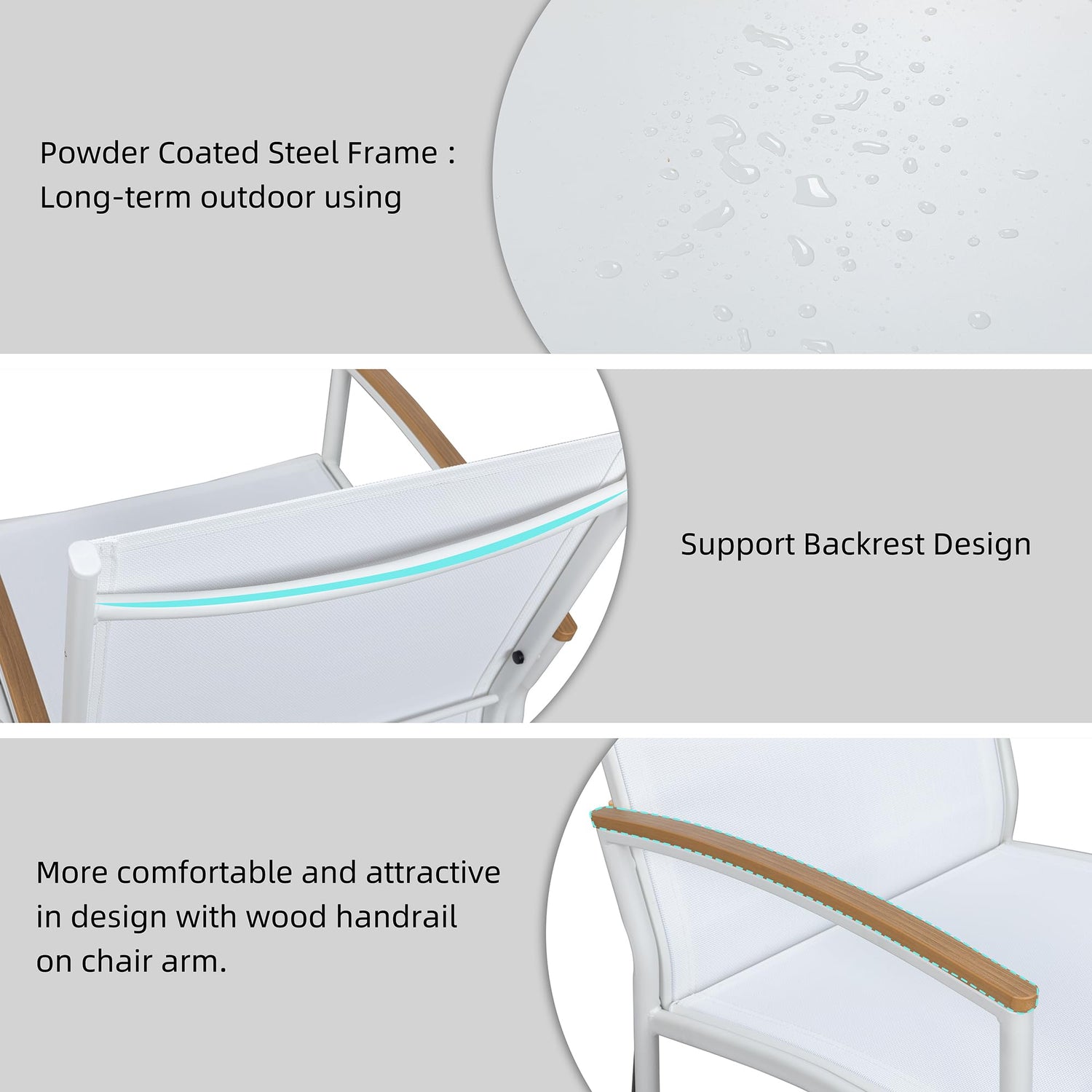 - Modern and Simple Style: This patio furniture sets are suitable for any environment such as poolside, garden, yard, porch or balcony, etc. Since the materials are light, you can easily move them as you like.