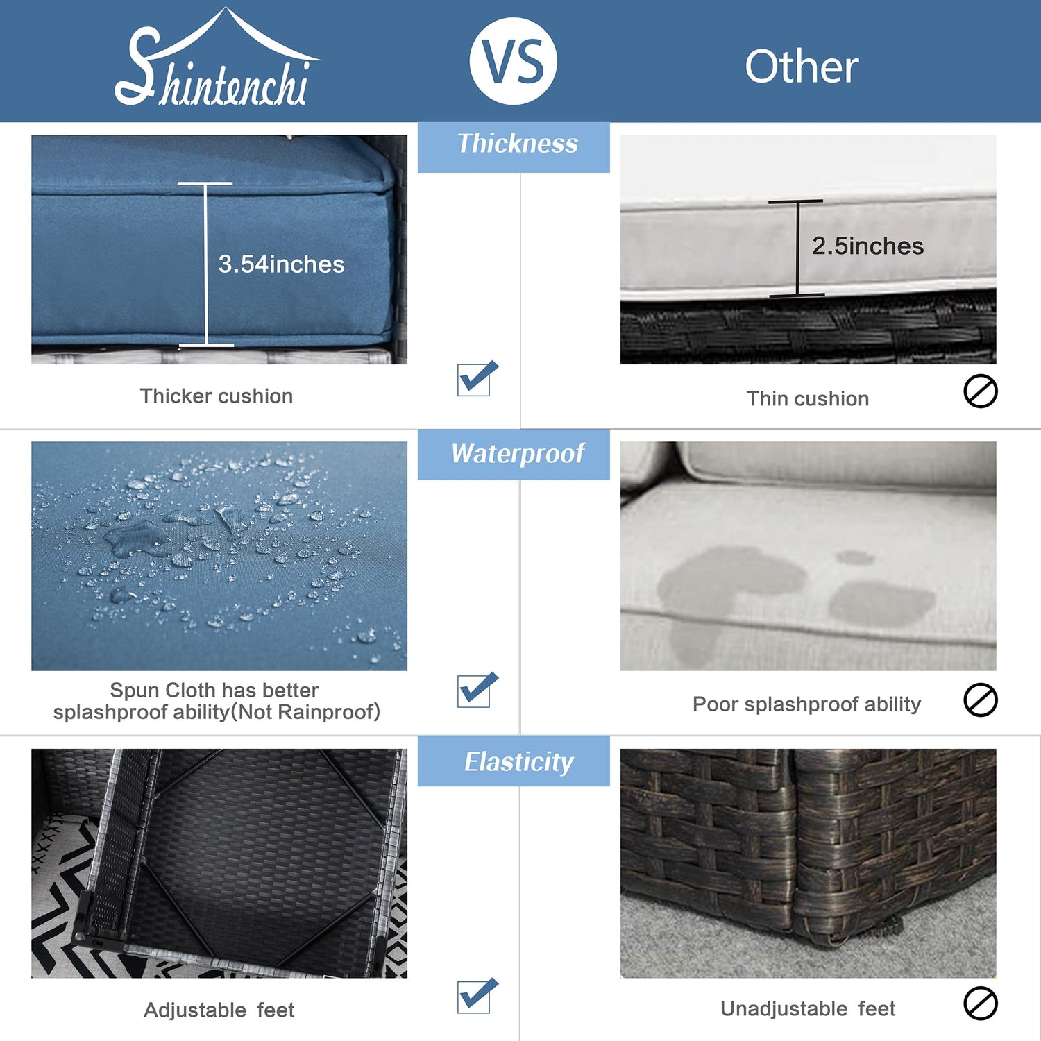Details: Shintenchi 3 Pieces Patio Furniture Set,All-Weather Rattan Patio Conversation Set,Outdoor Sectional Silver Wicker Patio Couch with Washable Cushions and Glass Coffee Table(Navy Blue)