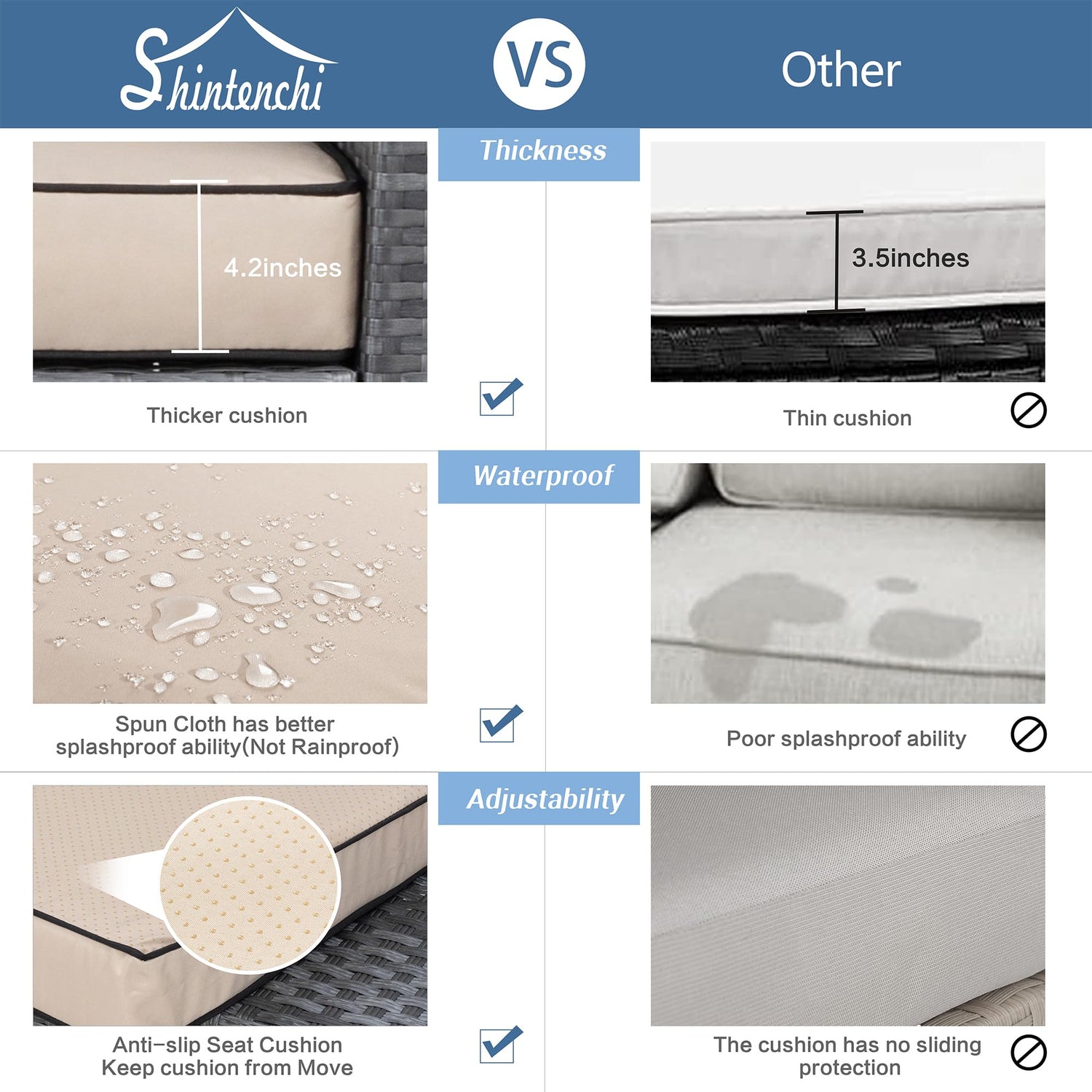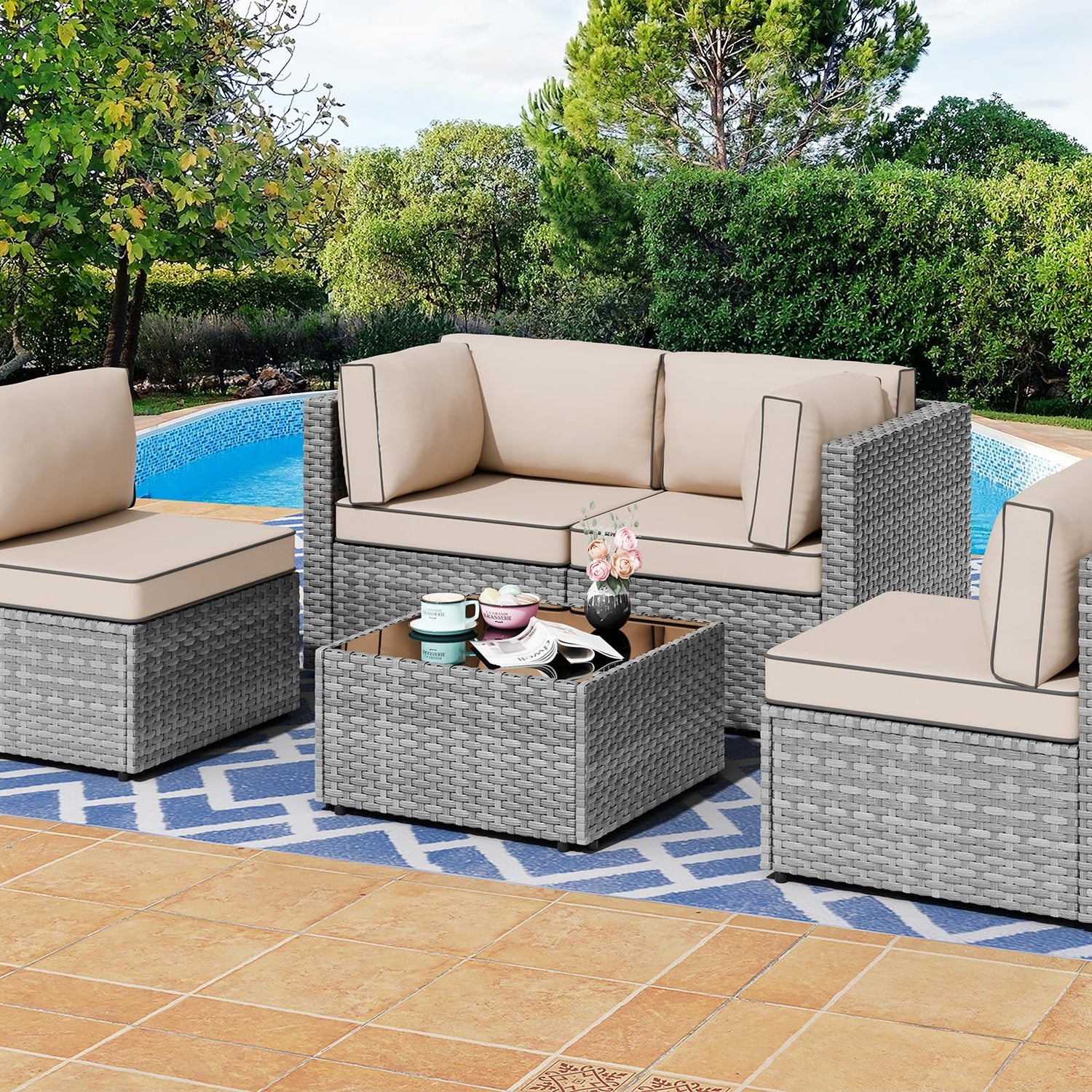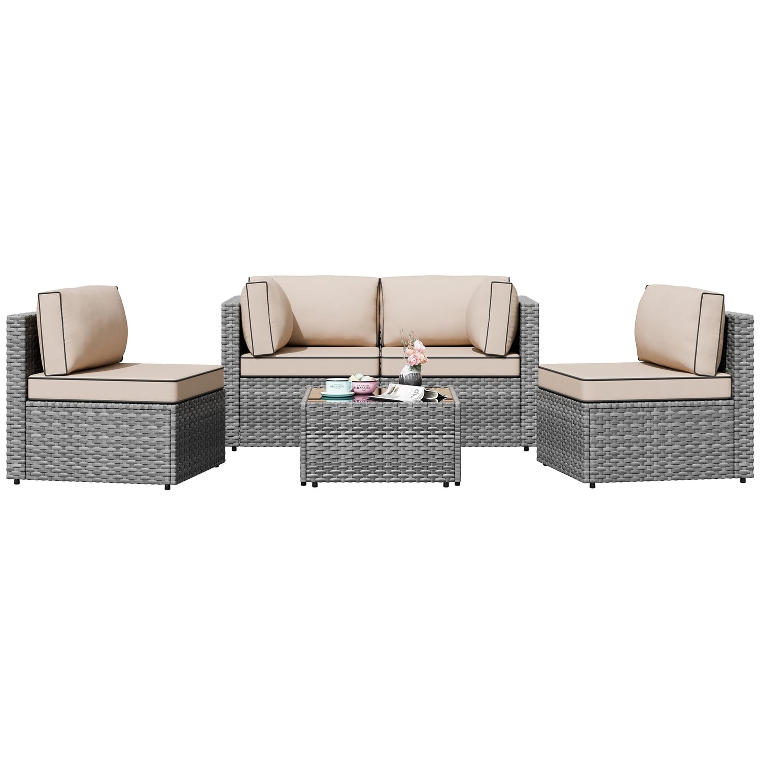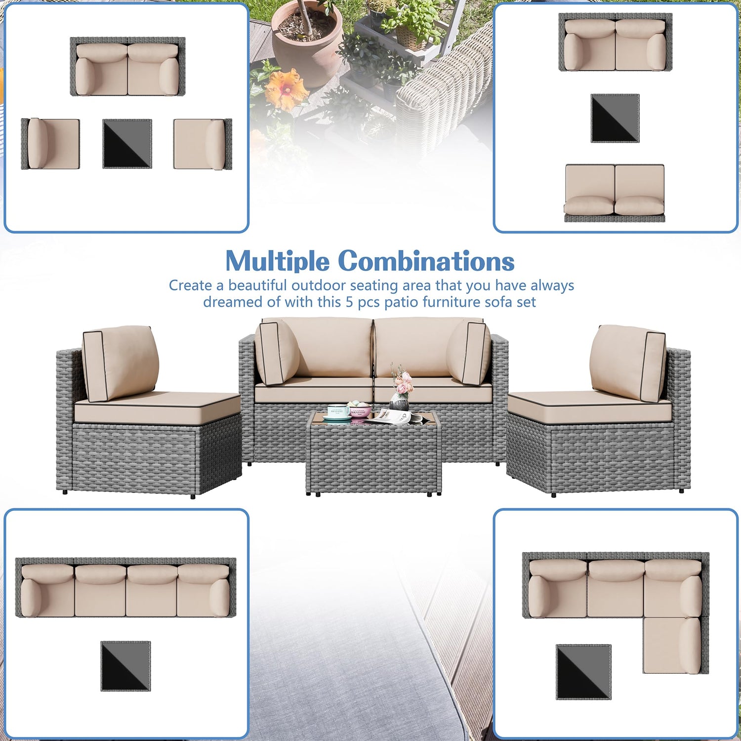 Shintenchi 5 Pieces Outdoor Patio Furniture Sets, Patio Sectional Sofa Couch, Gray PE Wicker Furniture Modular Patio Conversation Sets Patio Sofa with Washable Cushions & Table(Khaki)