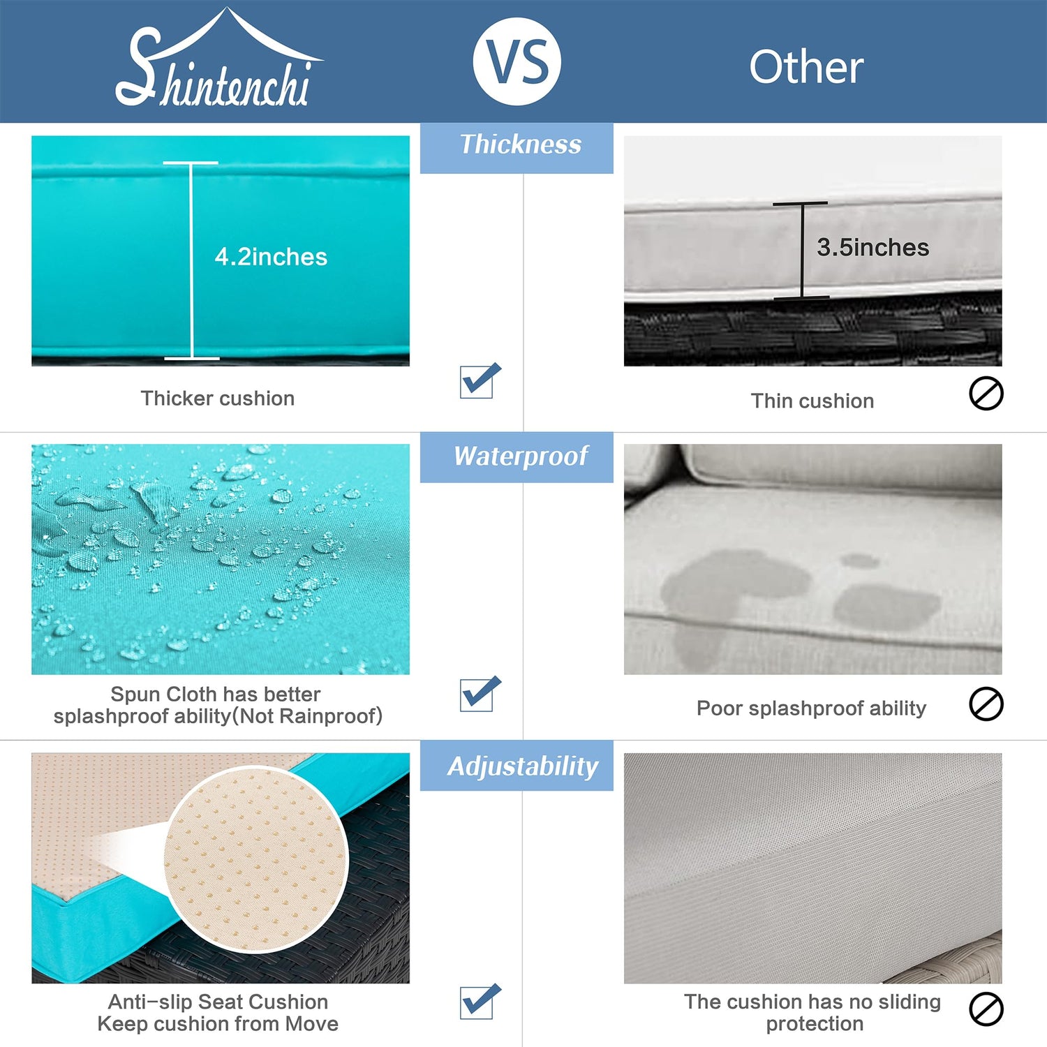 1.You could combine the Shintenchi 5 pcs outdoor furniture set freely according to your needs in your garden, balcony, poolside or porch.