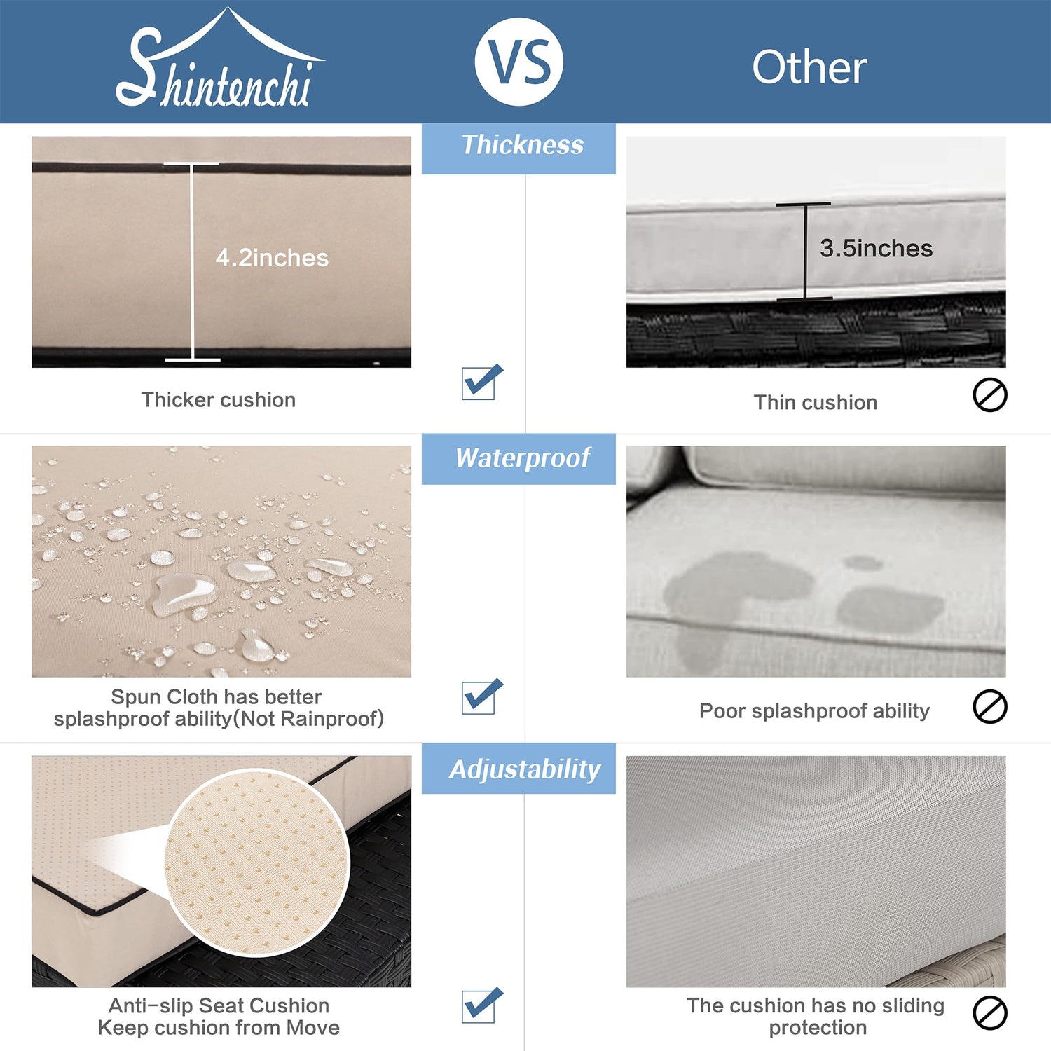 5. Please cover the set when rain, snow or frost comes since the inner sponge is not water proof.