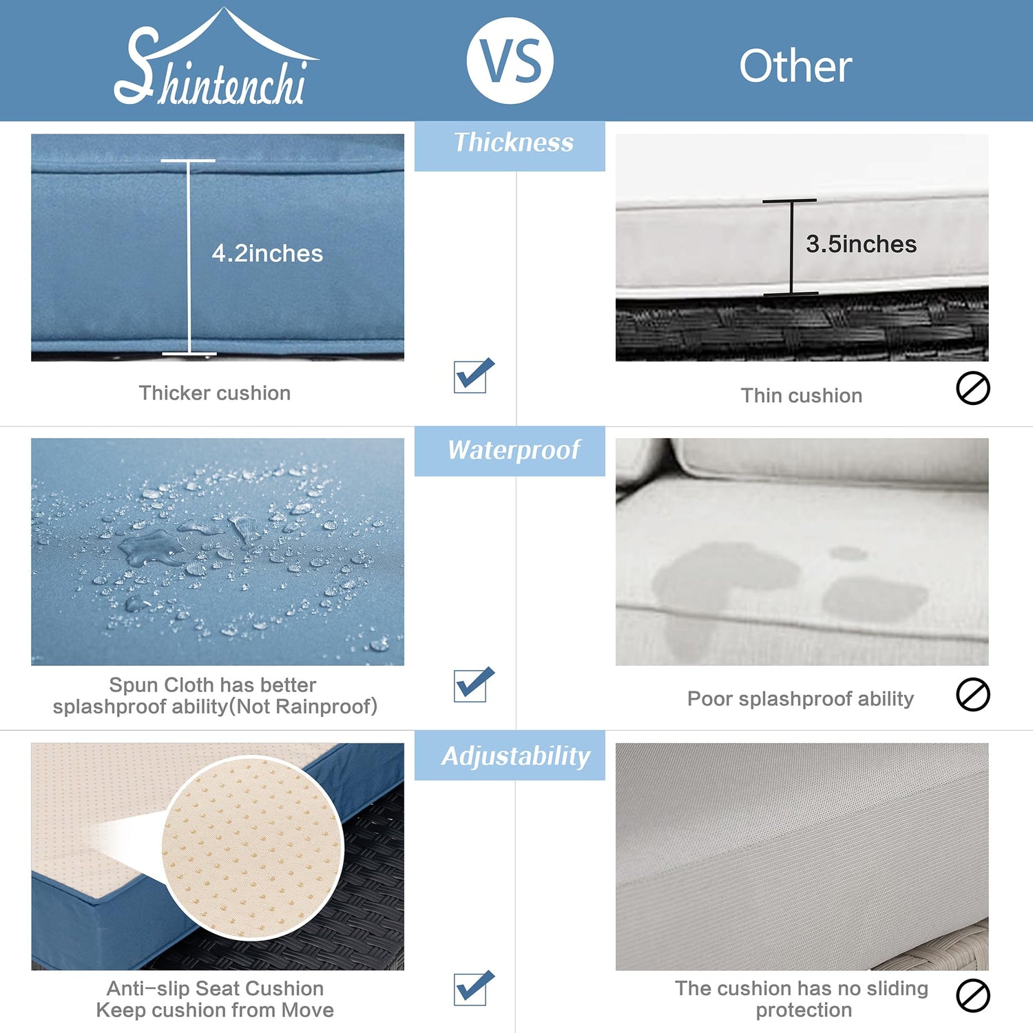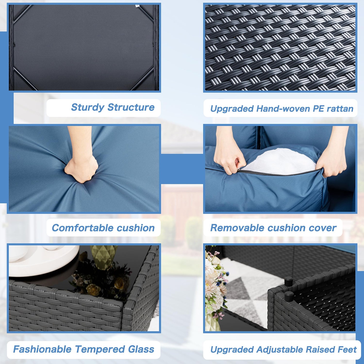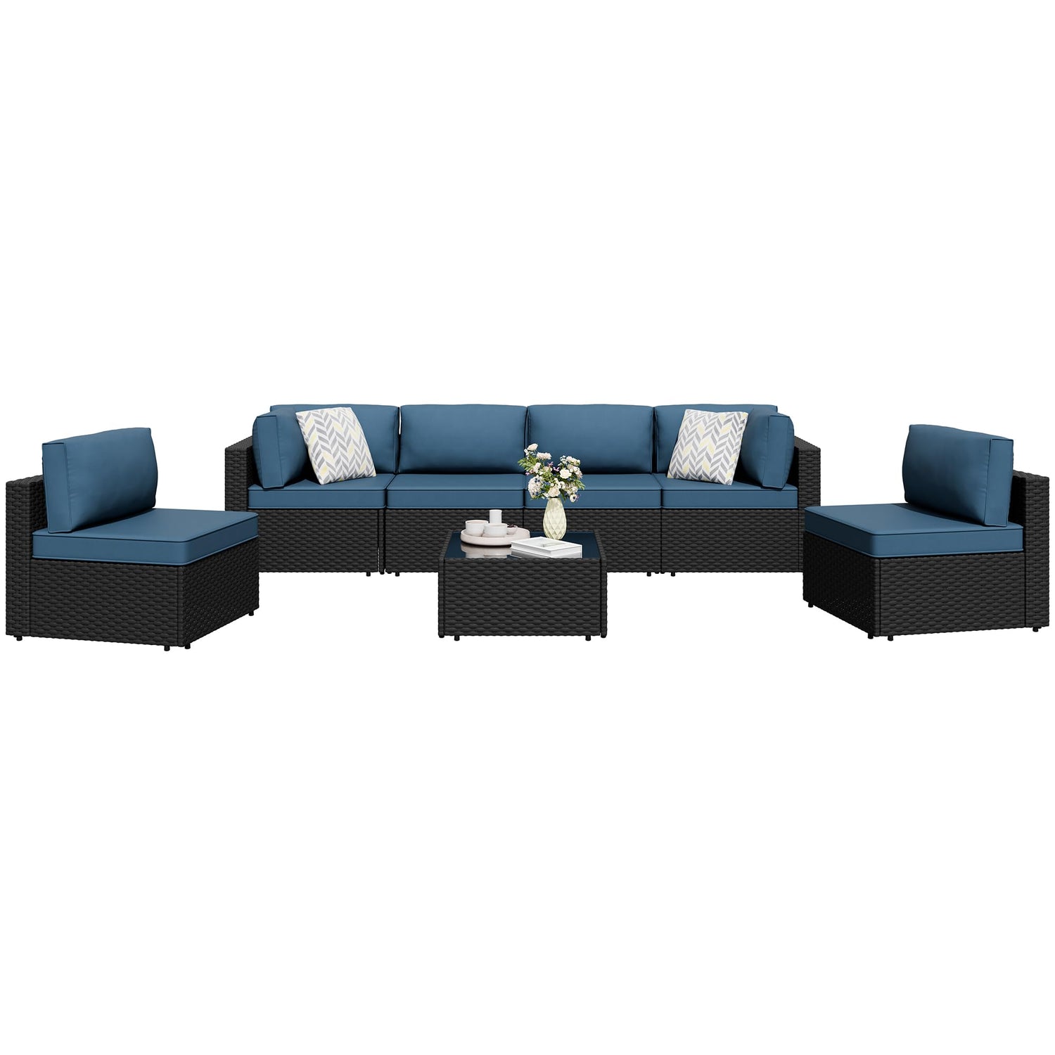 Shintenchi 7 Pieces Outdoor Patio Sectional Sofa Couch, Wicker Furniture Patio Conversation Sets with Washable Cushions & Coffee Table for Garden, Poolside, Backyard (Aegean Blue)